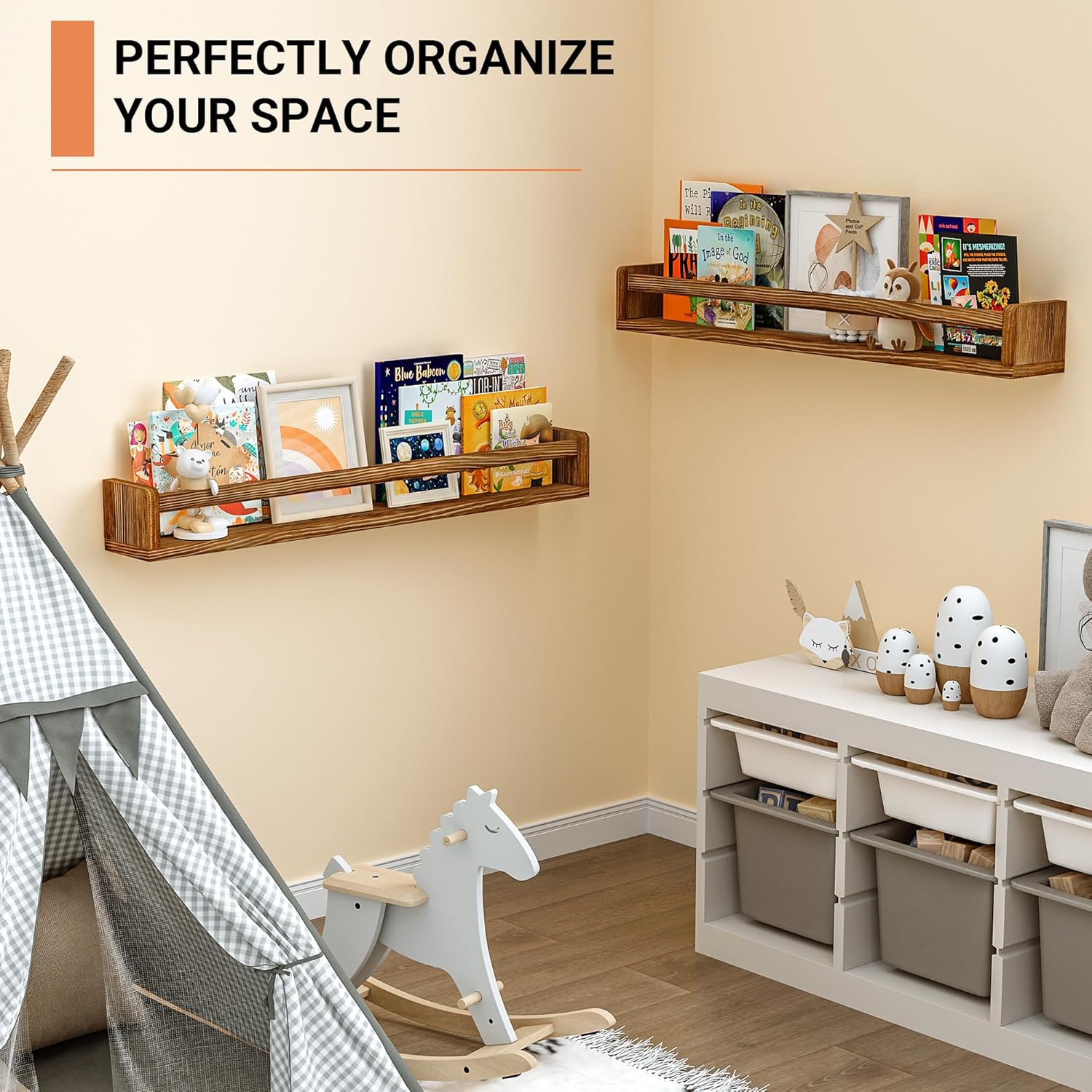 Heimlove 32 Inch Nursery Floating Shelves, Nursery Book Shelves for Wall, Wall Bookshelf for Kids Solid Wood Wall Mounted Shelves for Books,Toys and Decor Storage, Set of 2
