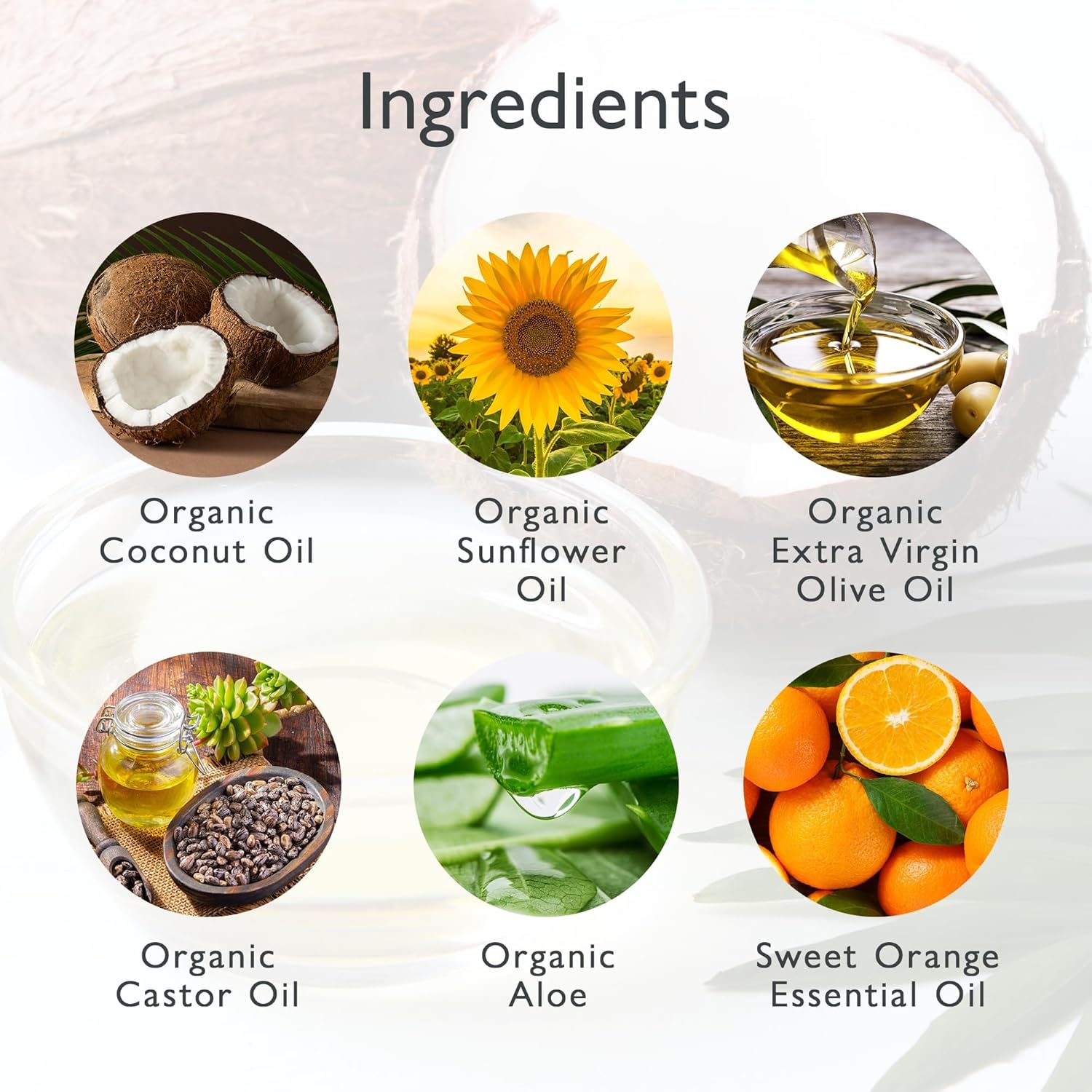 - RICH IN ORGANIC OILS - Contains organic sunflower, coconut, extra virgin olive, and castor oils, packed with antioxidants, vitamins, and essential fatty acids for lasting nourishment.