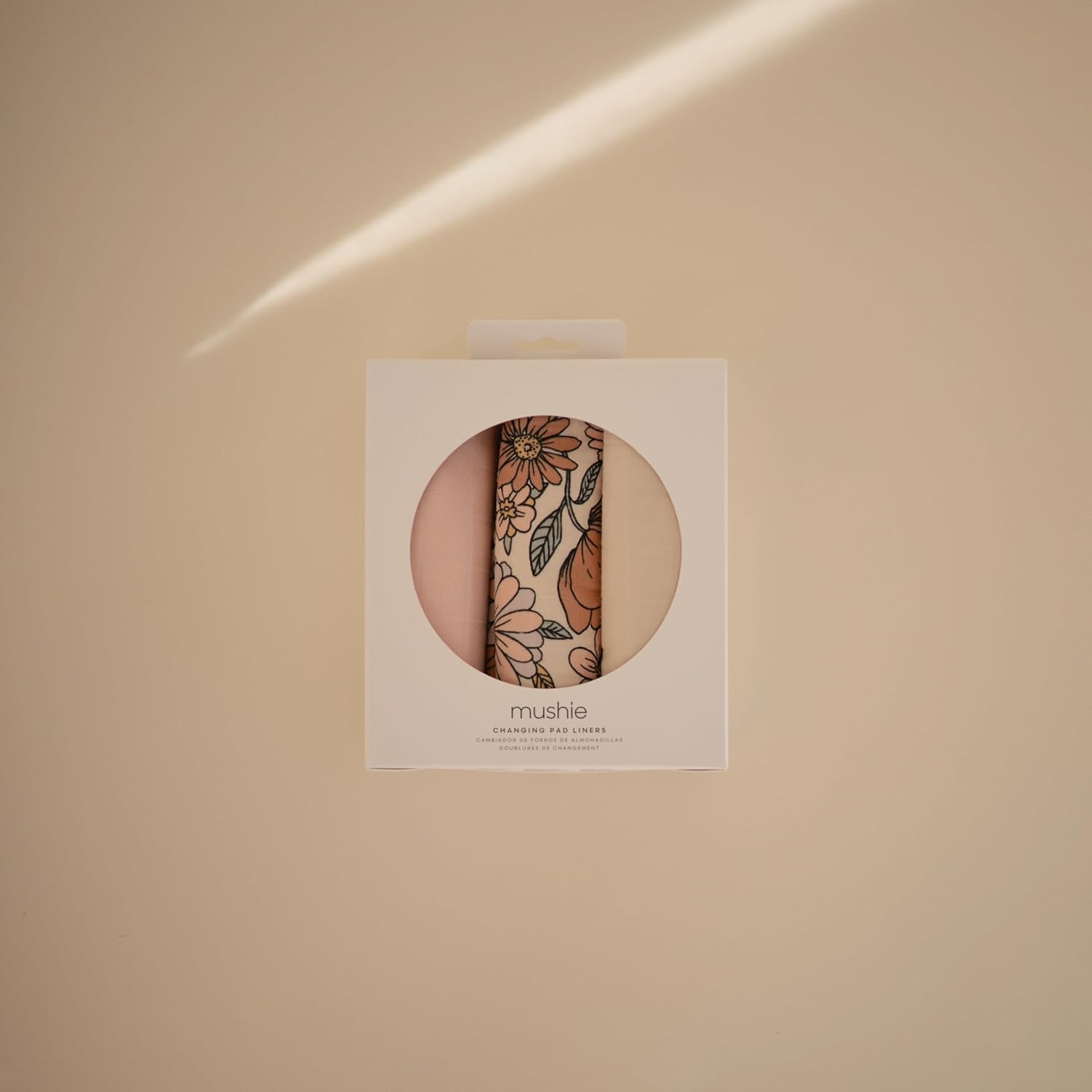 mushie Waterproof Changing Pad Liners | 100% Organic Cotton | Set of 3 (Retro Flowers Combo)