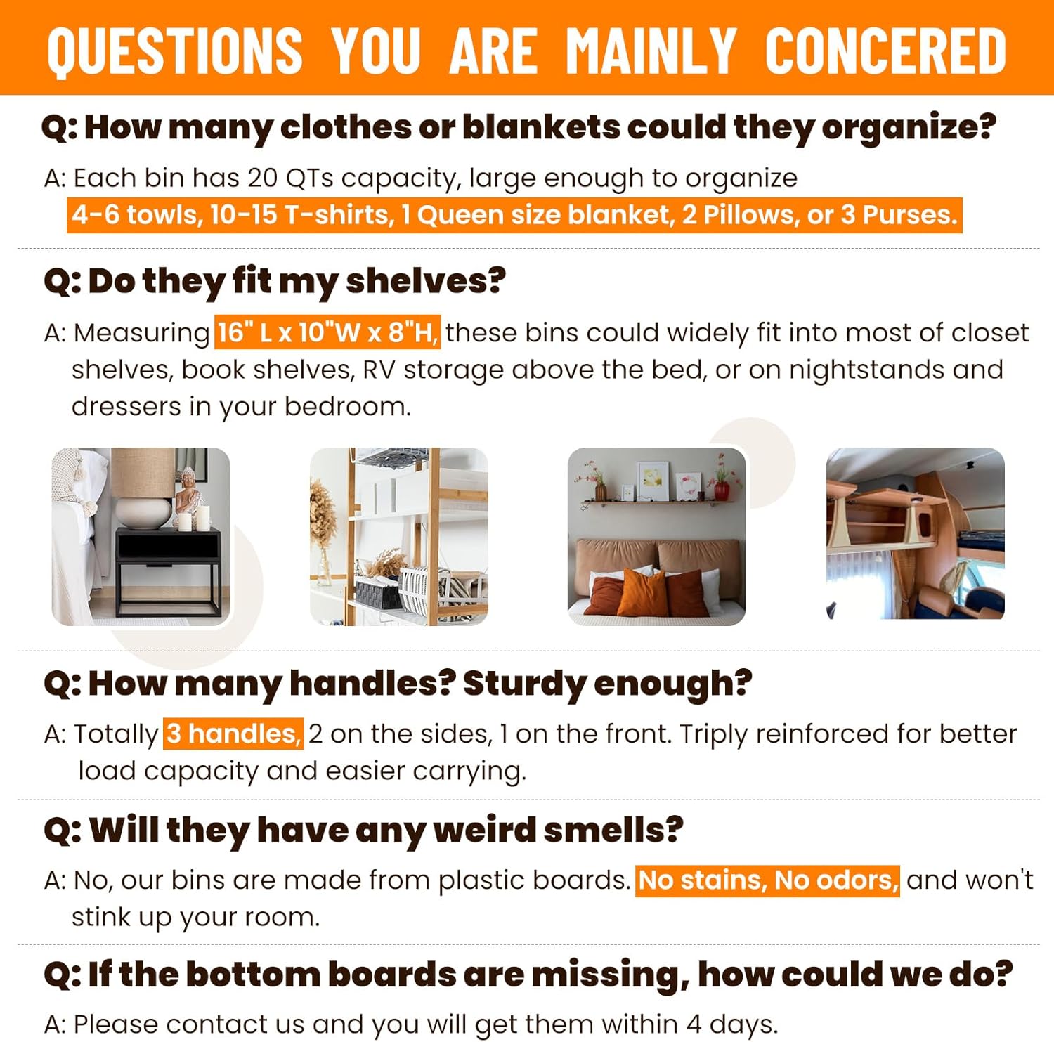 - γππππ ππΌπππ πΎππππΌπππ½πππππγMeasuring 16β (L) x 10β (W) x 8β (H/back) / 5.3β (H/front), these clothes storage bins could perfectly fit in shelves, closets, under bed, college dorm rooms, RV storage above the bed, nightstands, or on dressers, offering versatile organization and storage solutions for any rooms.