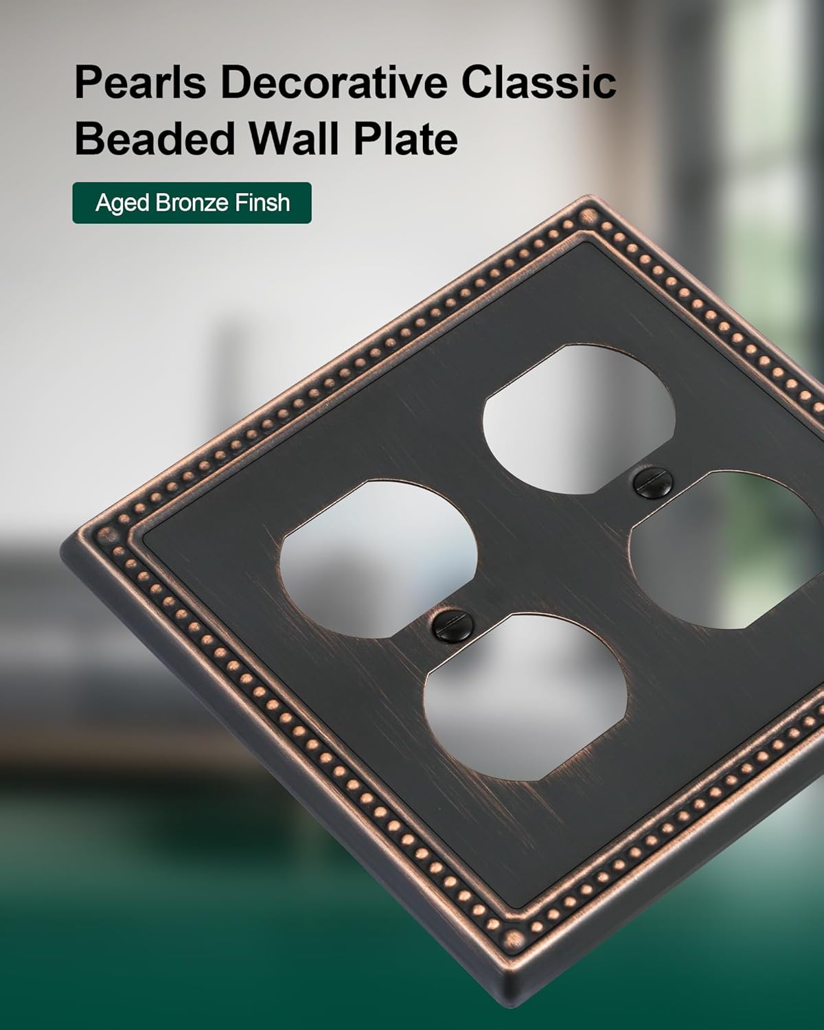 - Timelessly Elegant - The double duplex outlet cover features an exquisite aged bronze finish with a traditionally styled beaded border. Offering a functional yet elegant enhancement to your home decor. Stylish wallplate effortlessly blends practicality with a refined decorative accent and sophisticated charm.
