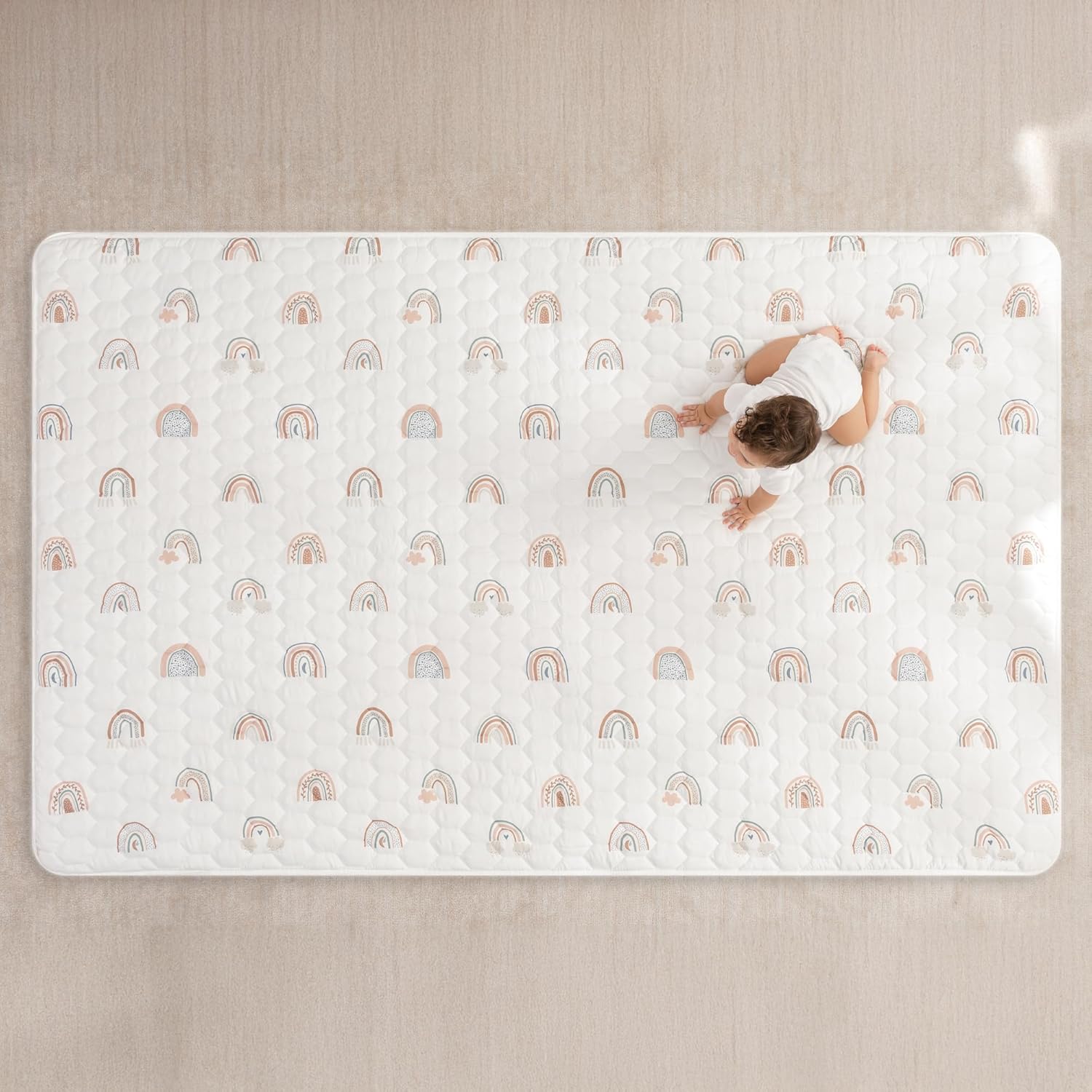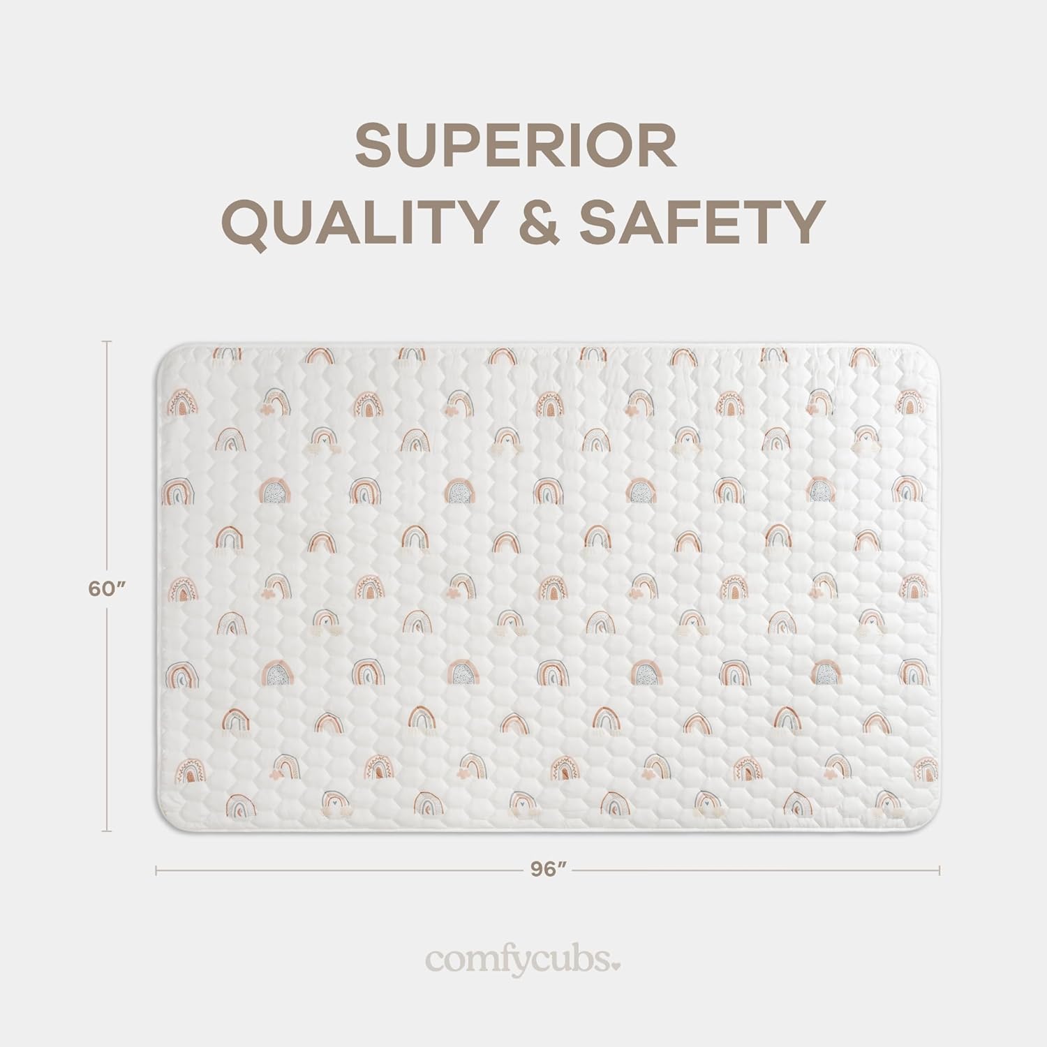Comfy Cubs Rectangle Kids Play Mat - Large 60 x 96 inches Soft Quilted Baby Floor Mat with Non-Slip Bottom - Plush Design for Toddlers' Playtime and Relaxation - Comfortable and Durable - Rainbow