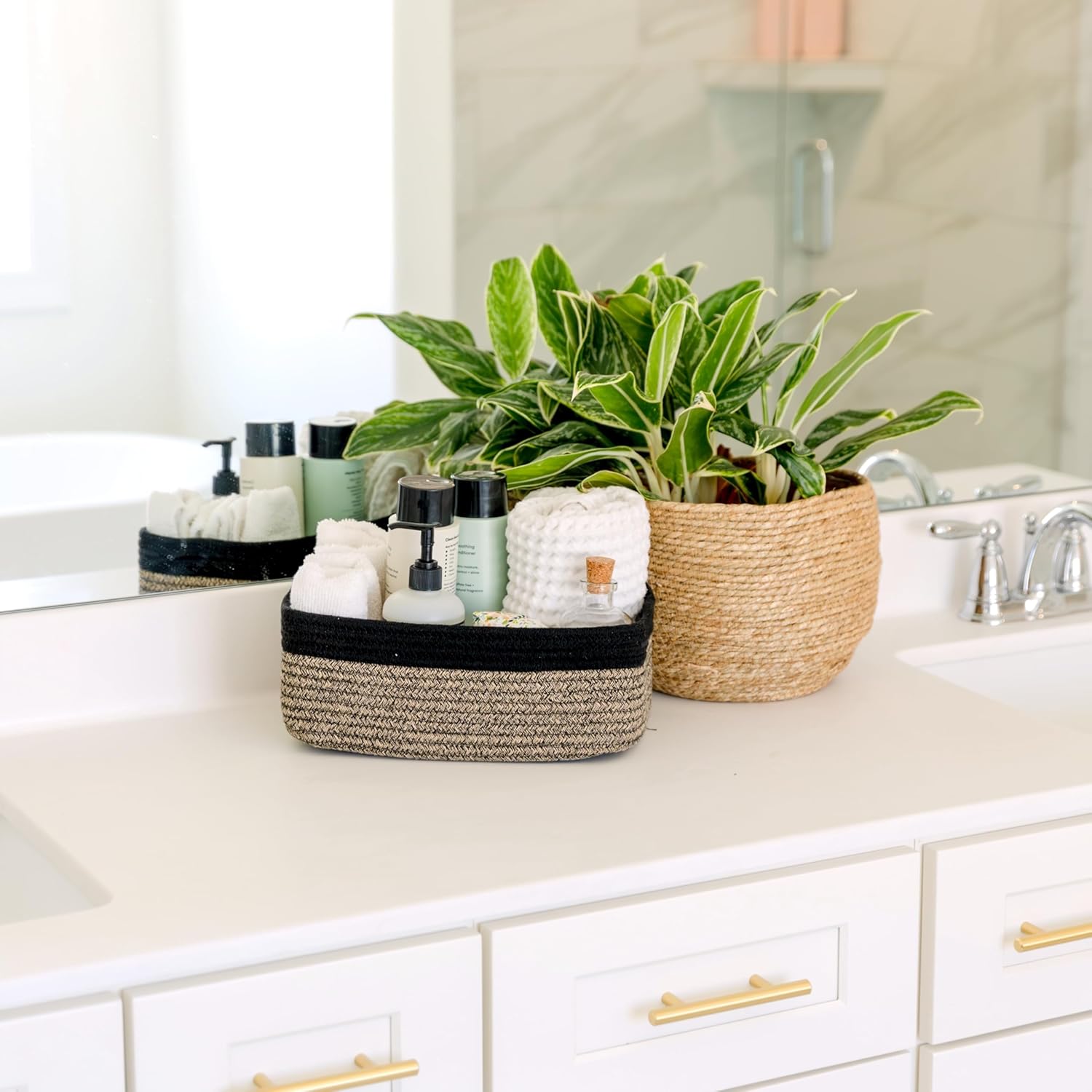 NaturalCozy 11.8"x8"x4.5” Rectangle Storage Baskets for Shelves 3 Pack | Cotton Rope Woven Small Baskets for Organizing | Small Storage Bins for Nursery, Bathroom, Closet, Shelf, Decorative, Gift
