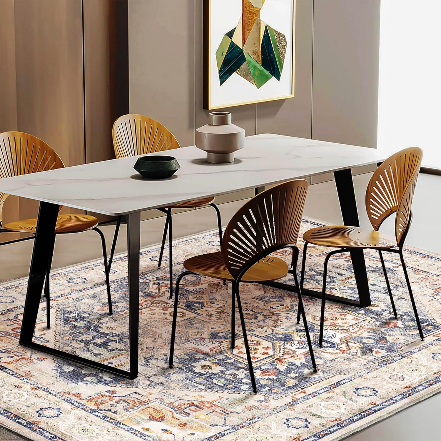 - Ultra-thin Safe: This ultra-thin Moroccan rug can be easily placed in entryways and under furniture, and won't get stuck on doors and become a tripping hazard. The sweeping robot can move freely to clean the carpet.This indoor rug can be used in many occasions, such as entry, living room, bedroom, dining room and more
