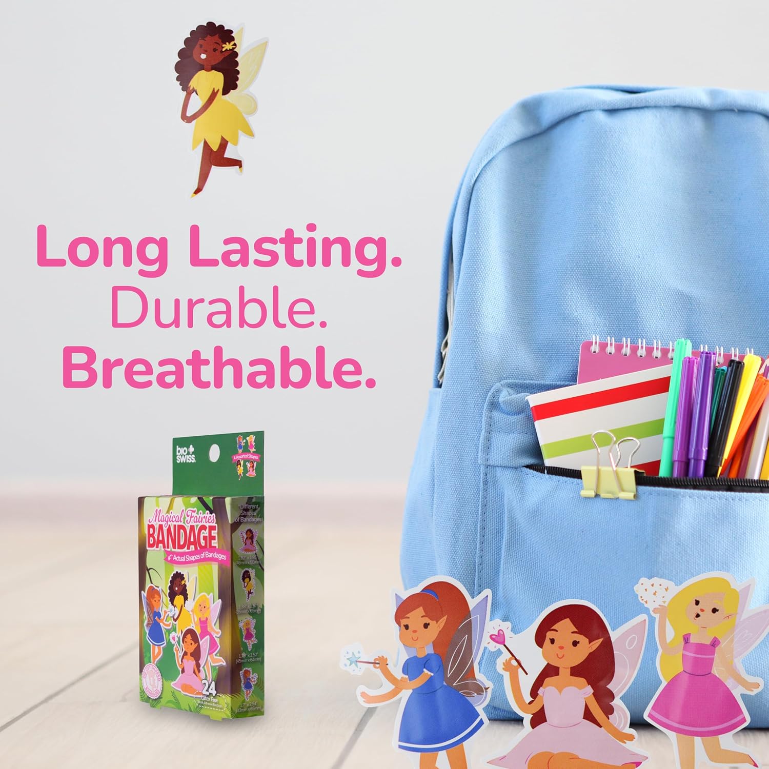 BioSwiss Bandages, Magical Fairies Shaped Self Adhesive Bandage, Latex Free Sterile Wound Care, Fun First Aid Kit Supplies for Kids and Adults, 24 Count
