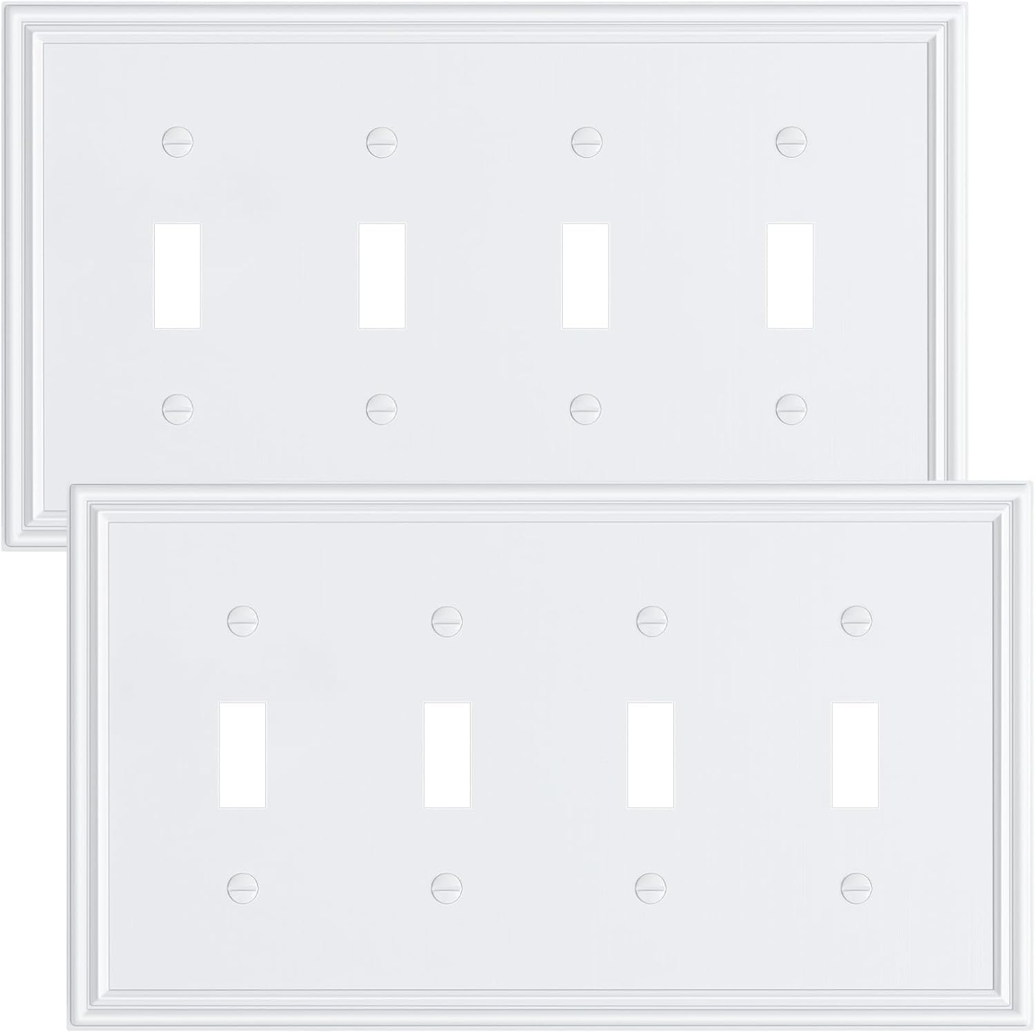 2-Pack Quad Toggle Light Switch Cover Plate, Durable Zinc Alloy Decorative Switch Plate Covers, Pure White 4 Gang Wall Plate for Toggle Light Switch and Rotary Dimmer Switch
