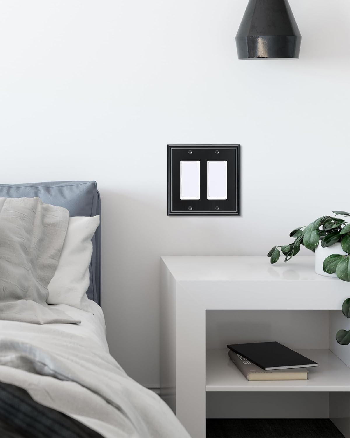 2-Pack Decorative Double Decorator Outlet Cover Plate, Durable Zinc Alloy Black Wall Plates for Electrical Outlets, Receptacle, GFCI Outlet, Dimmer Switch, 2-Gang, Corrosion Resistant