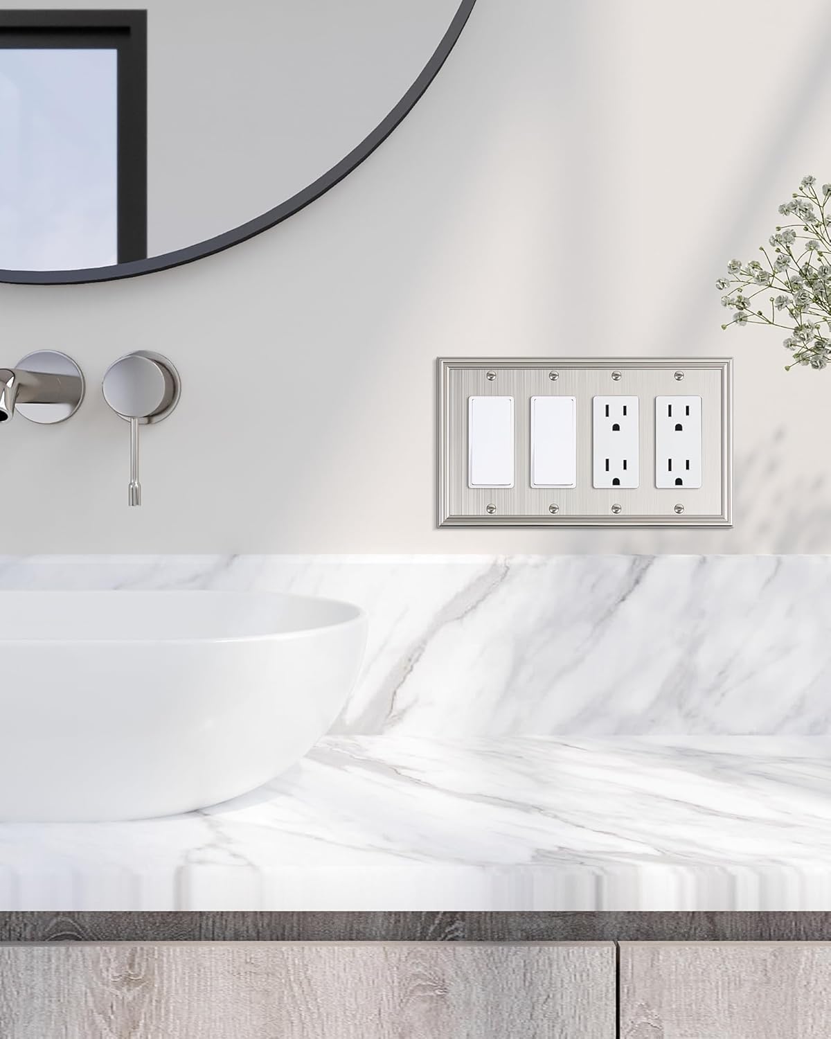 - Elevate Your Decor - The brushed nickel wall plate boasts simple, clean, and elegant lines with brushed texture. Its sleek and modern design, adds a touch of elegance and a refined decorative accent to any room, seamlessly integrating into any decor style and providing a timeless yet sophisticated look that will make your decor stand out.