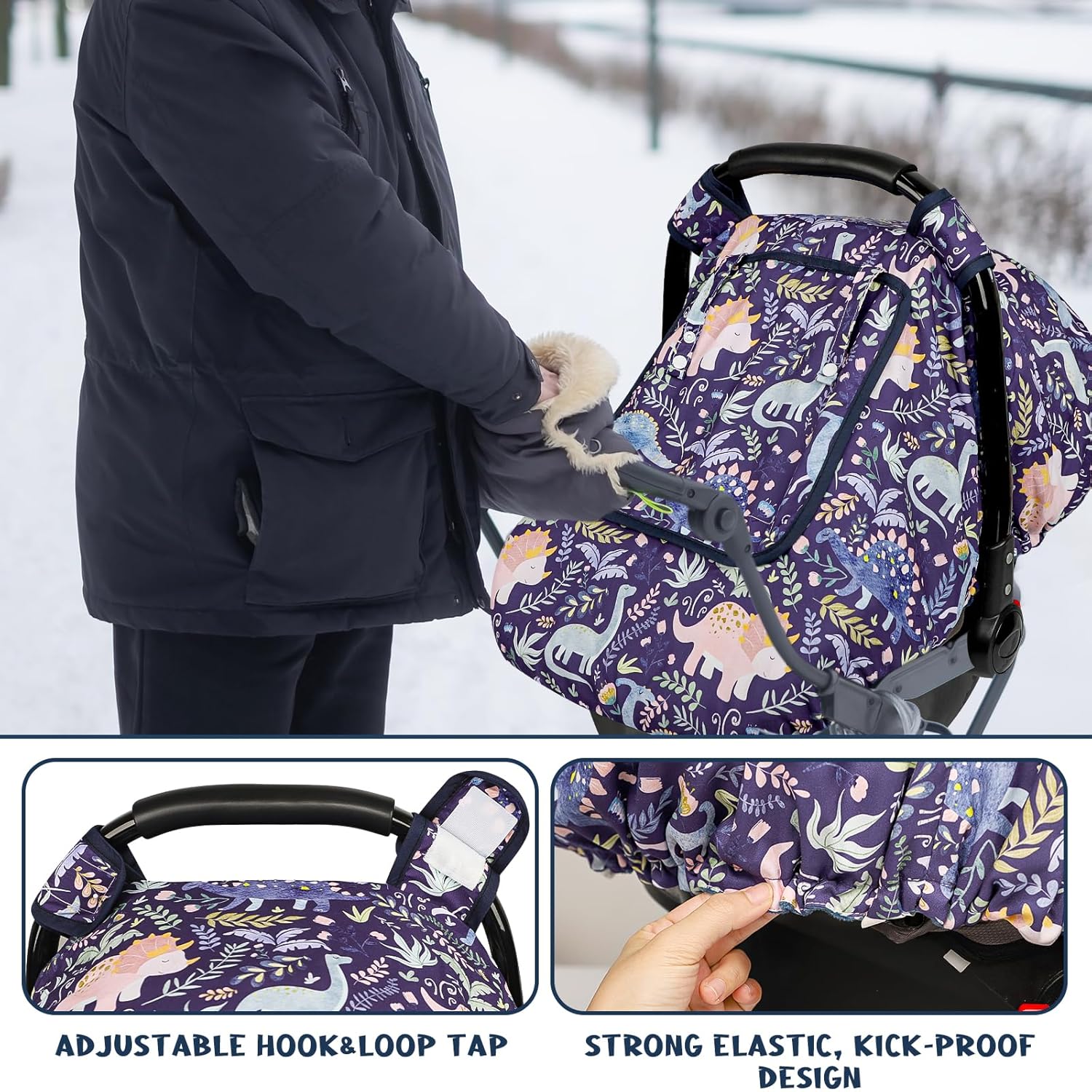 Pea Pod Car Seat Cover Baby, Infant Car Seat Canopy Covers for Newborn with 2 Layers Windows of Breathable Mesh Fabric, Lightweight Polyester/Soft Minky Dot Backing (Dinosaur)