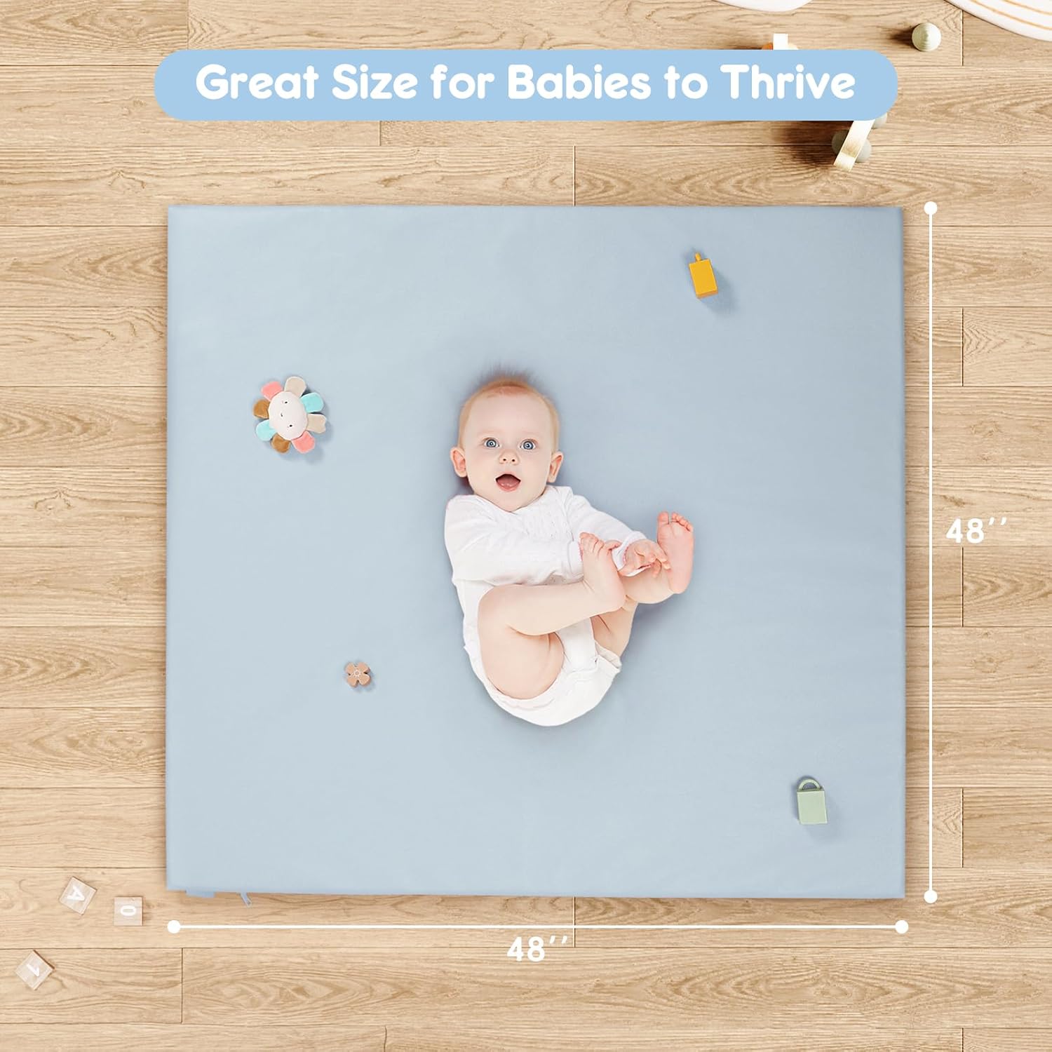 Stylish Padded Baby Play Mat for Your Boy or Girl - Extra Thick & Super Soft Vegan Leather Floor Mat Creates A Safe Play Area for Little Ones - Blue