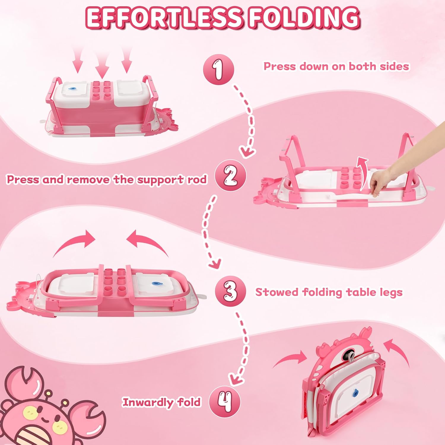- 【High-Quality Materials, Stable Support】Made of high-quality PP+TPE materials, non-toxic, odorless and environmentally friendly high-quality materials, friendly to the baby's skin, so that parents can rest assured, the bottom of the bathtub is supported by four corners to enhance the structural stability to prevent rollover, the connection is tight and strong, after many folding, use tests, not easy to deform and damage, accompany the baby's growth at multiple stages, long-lasting