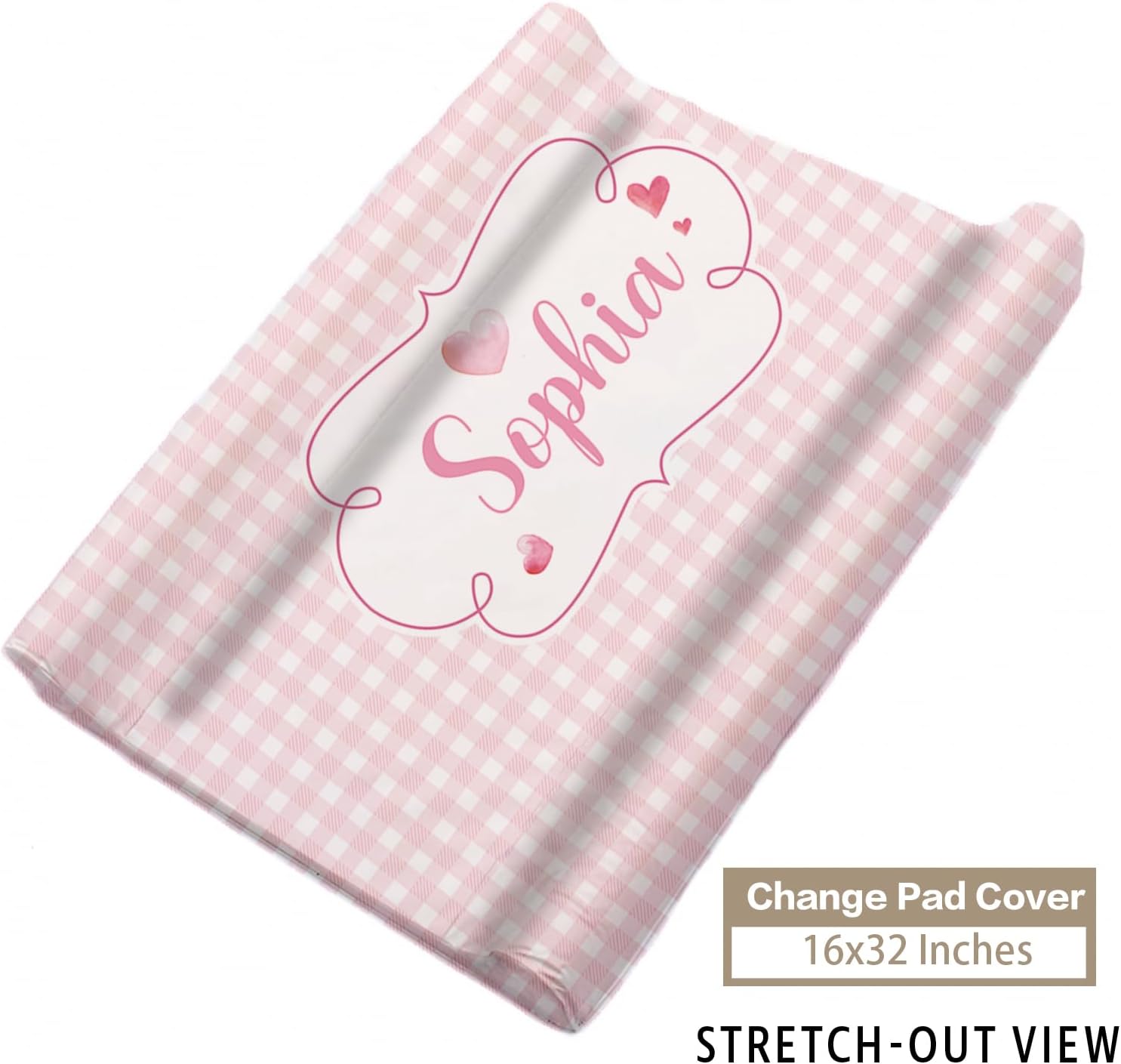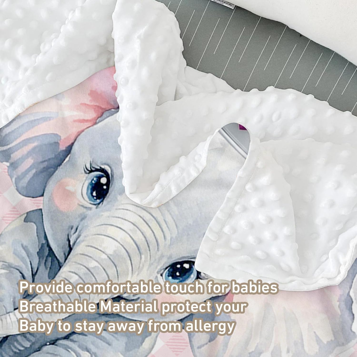 Custom Name Crib Bedding Set - Elephant Theme, Personalized Pink Checkered Nursery Bedding 3-Piece Set– Soft Blanket, Fitted Sheet, Changing Pad Cover – for Newborns Girls Nursery Gifts