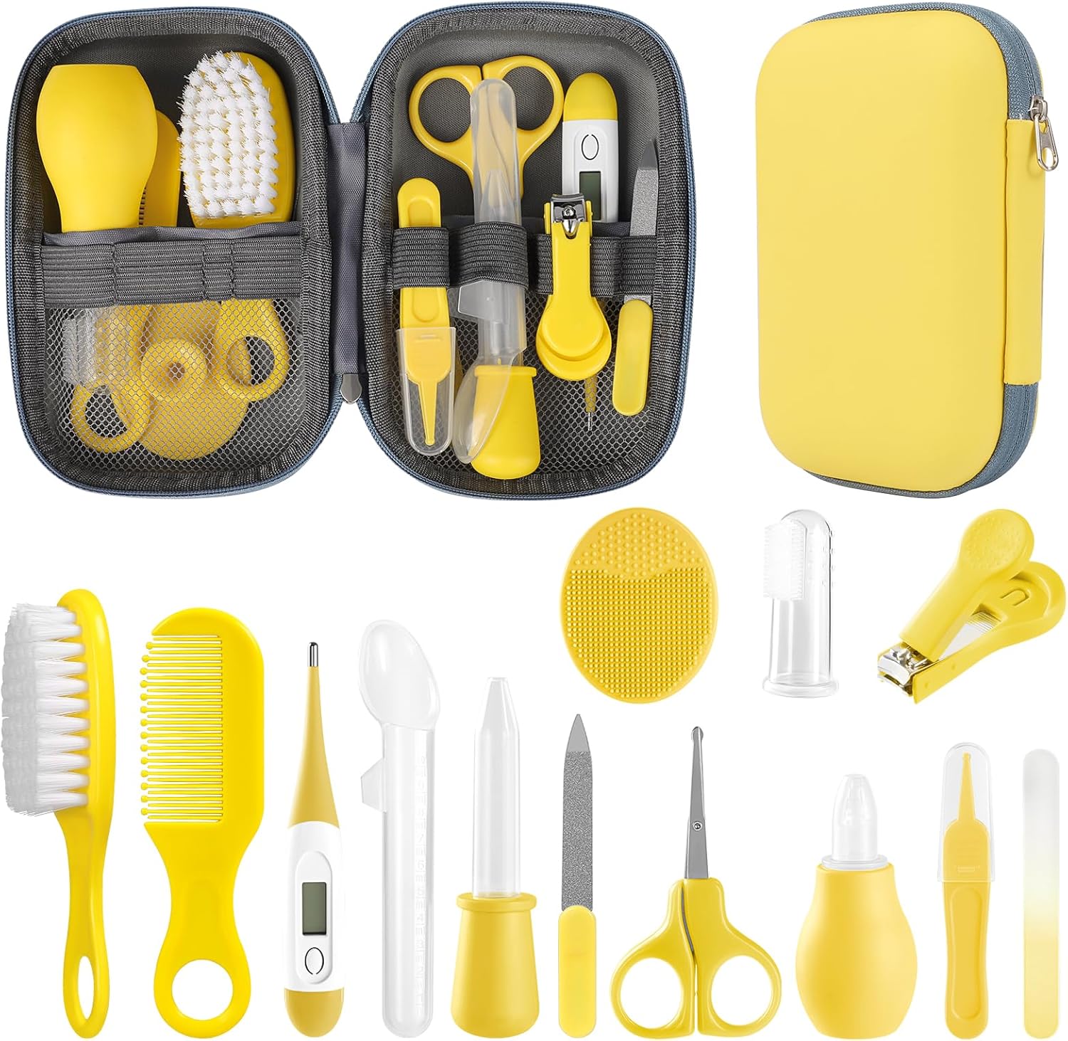Baby Grooming Kit, Infant Safety Care Set with Hair Brush Comb Nail Clipper Nasal Aspirator,Baby Essentials Kit for Newborn Girls Boys (Yellow)
