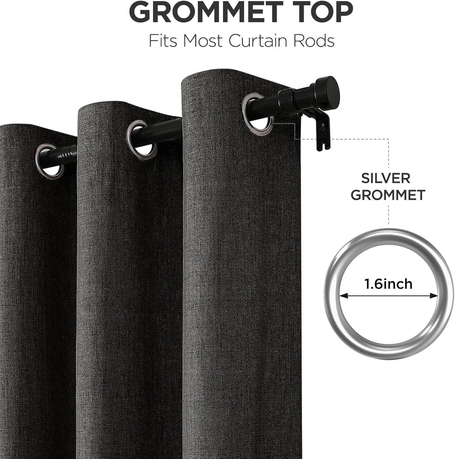 Joydeco Charcoal Grey Blackout Curtains 96 Inches Long, Curtains 96 Inch Length 1 Panel for Bedroom, Thermal Insulated Linen Black Out Curtains with Grommets(100x96, Charcoal Grey)