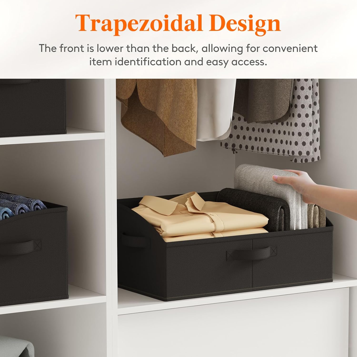 Lifewit Storage Baskets for Shelves, 6 Packs Non-woven Fabric Trapezoid Closet Organizer Bins with Handles, Foldable Clothing Containers Box for Clothes, Toy, Towel, Book, DVD, Hats, Large-Black