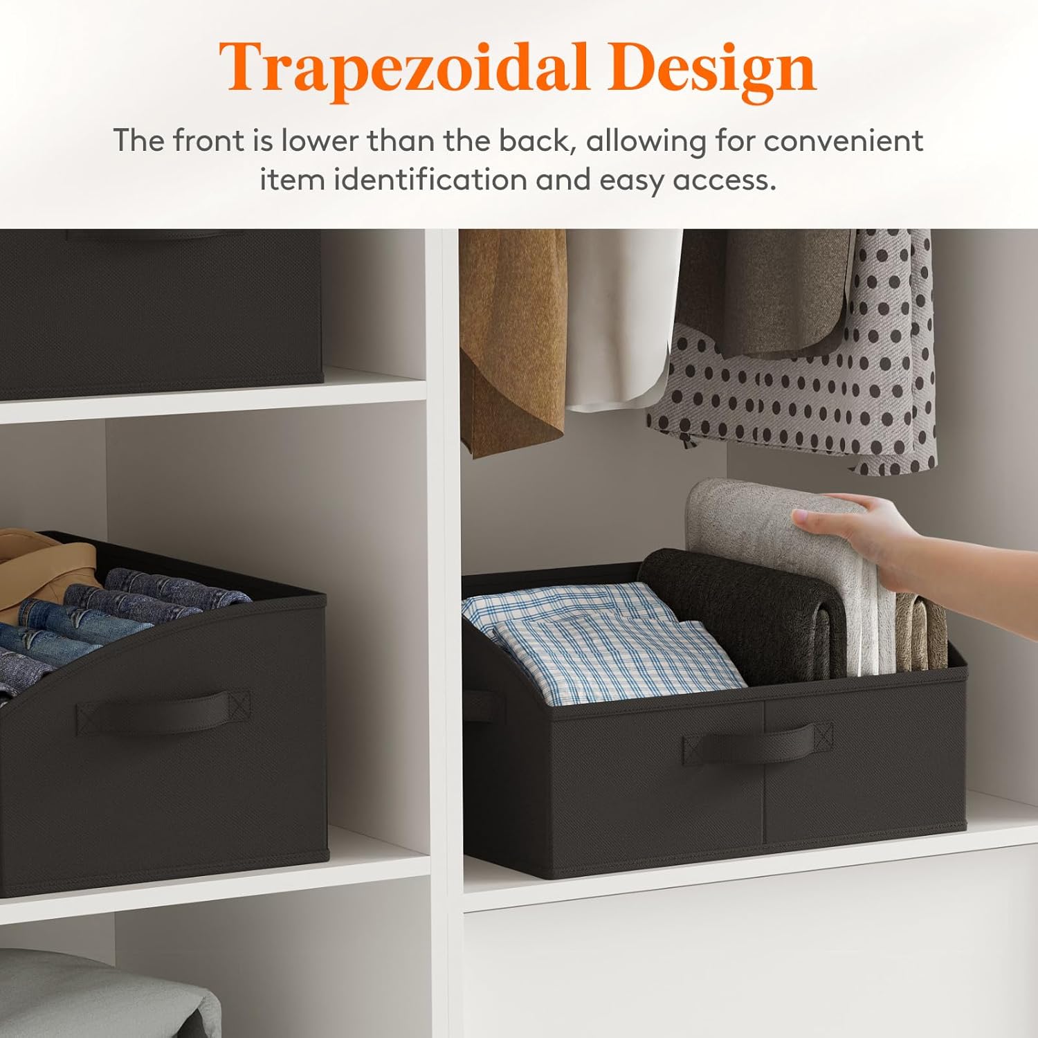 Lifewit Storage Baskets for Shelves, 6 Packs Non-woven Fabric Trapezoid Closet Organizer Bins with Handles, Foldable Clothing Containers Box for Clothes, Toy, Towel, Book, DVD, Hats, Medium-Black