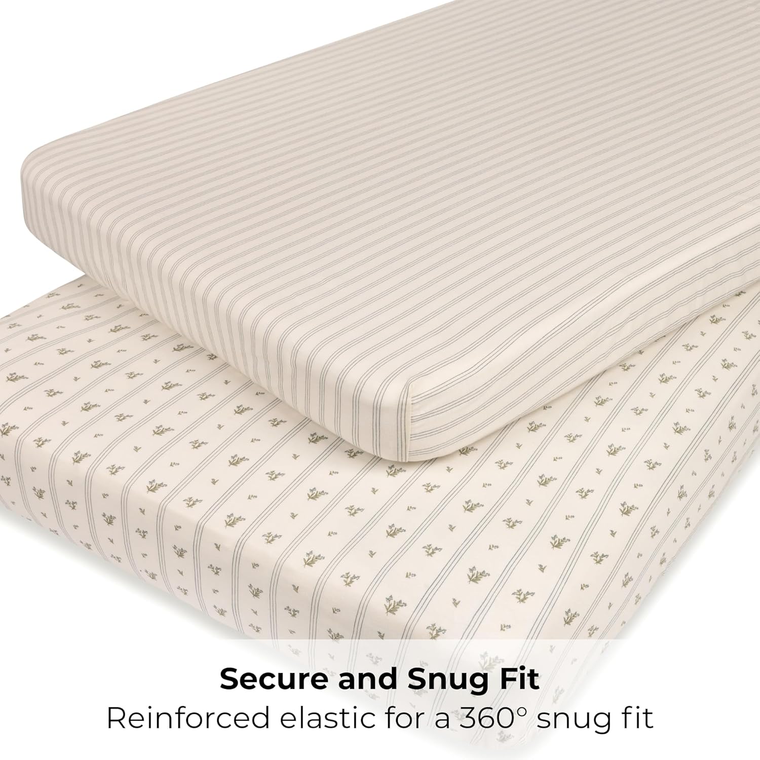 - Premium Jersey Cotton: Crafted from 100% jersey knit cotton, these fitted sheets offer a soft, breathable layer for your baby's delicate skin. The naturally stretchable, wrinkle-free fabric ensures a snug and cozy fit.