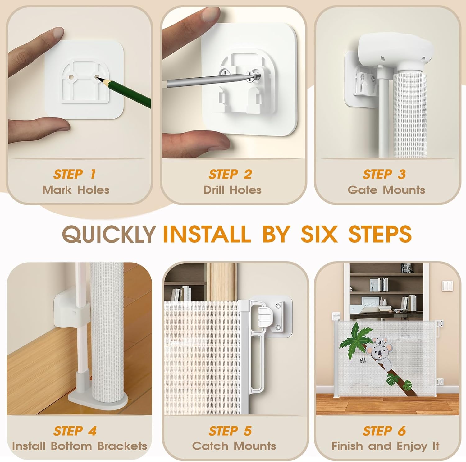 - Easy Peasy Installation : Say goodbye to complicated setups. Our mesh gate is designed for hassle - free installation in a variety of locations, including the top and bottom of stairways, doorways, hallways, and both indoor and outdoor spaces. The package comes complete with all necessary components like brackets, latches, wall anchors, screws, and clear instructions. With the provided tools, you'll have a secure and functional child gate up and running in no time, ready to safeguard your home