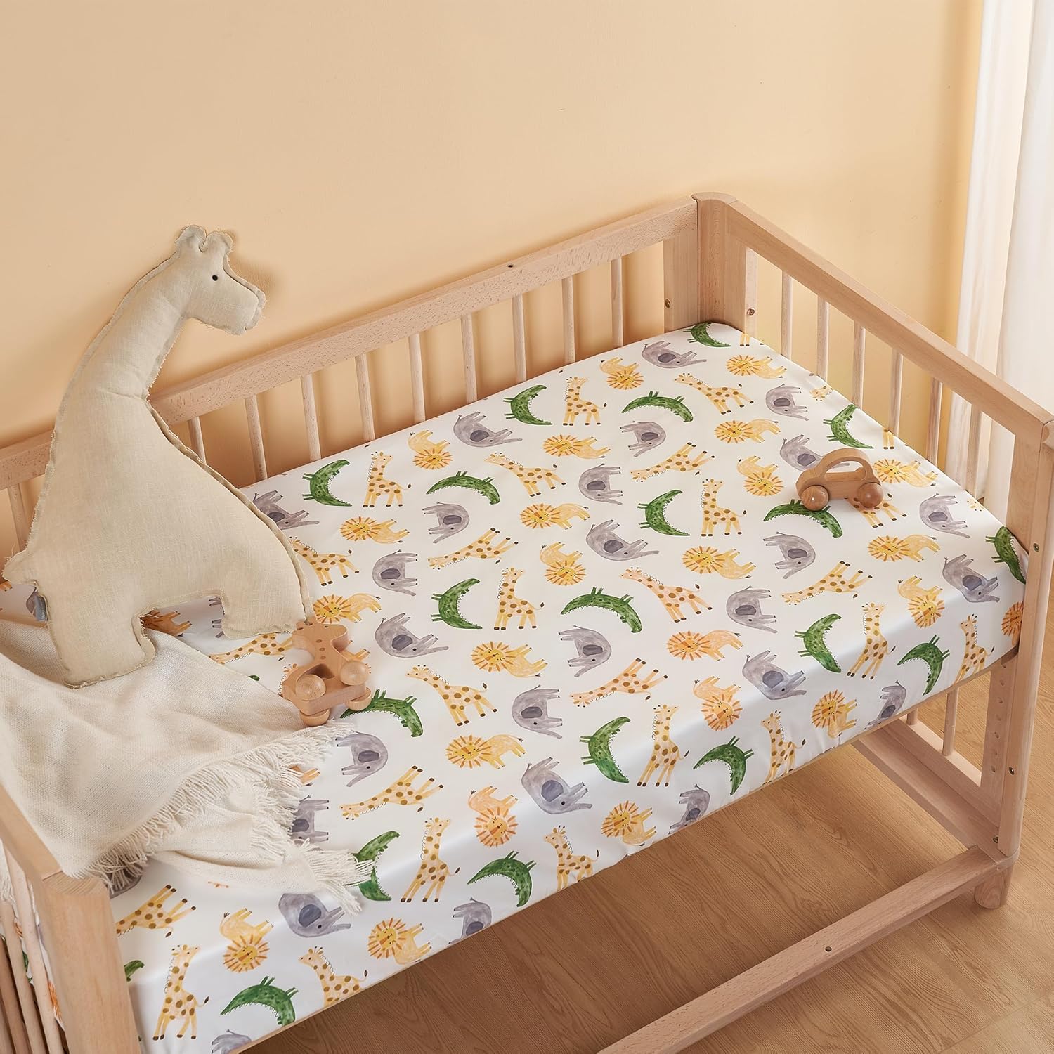 TILLYOU Baby Crib Sheets for Boys Girls, Super Soft Toddler Bed Sheets, 2 Pack Sheets for Standard Crib Mattress 28x52in, African Steppe