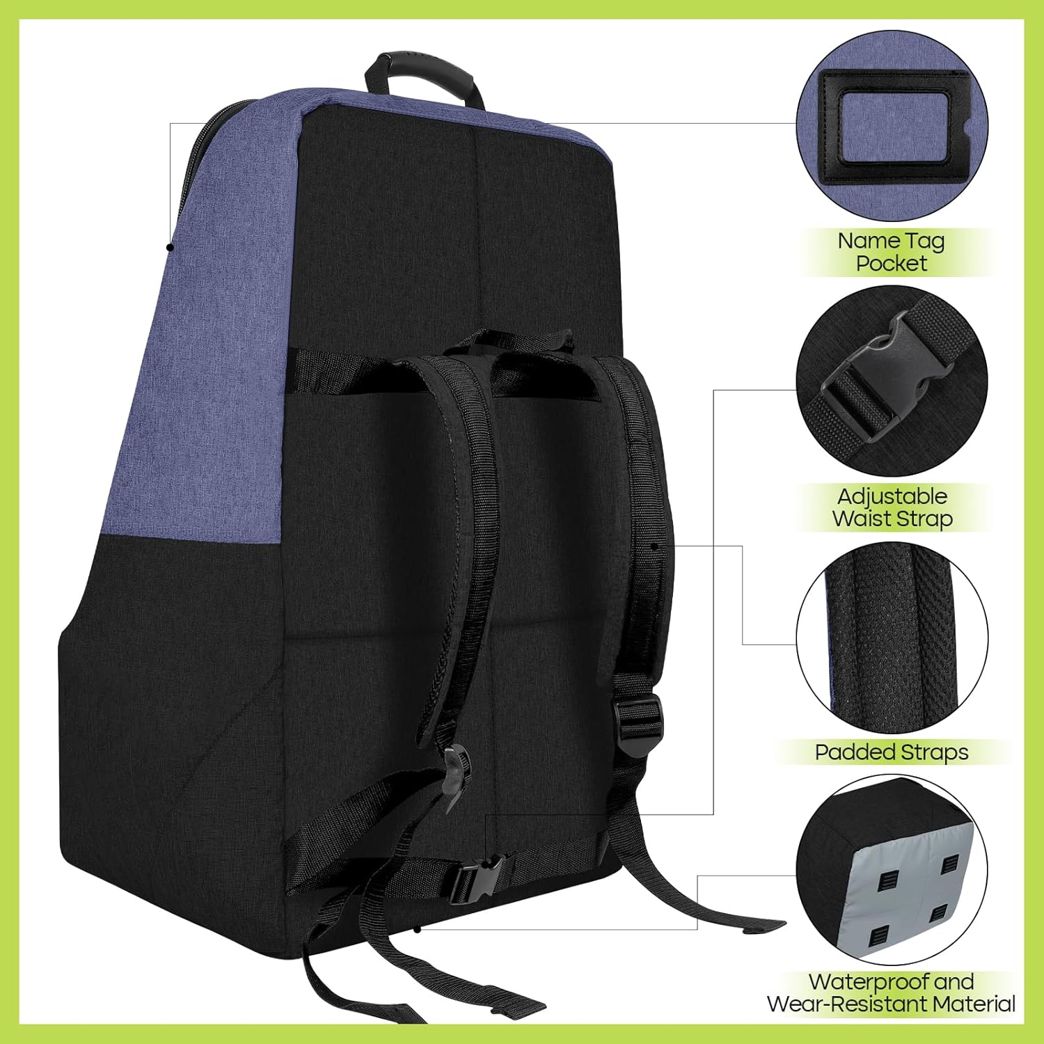 Padded Car Seat Travel Bag for Airplane, Heavy Duty Backpack for Air Travel, Water-Resistant Carrier with Shoulder Strap, Fits Most Car Seats (Blue+Black)