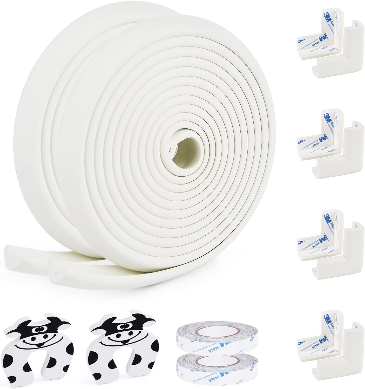 - 2PACK: Each baby edge and corner guard set includes 16.4 feet(5 meters) edge protector + 4 corner protectors + 1 finger pinch guard. With two bumper guards included in the pack. you can create a safe environment for your child throughout your living space