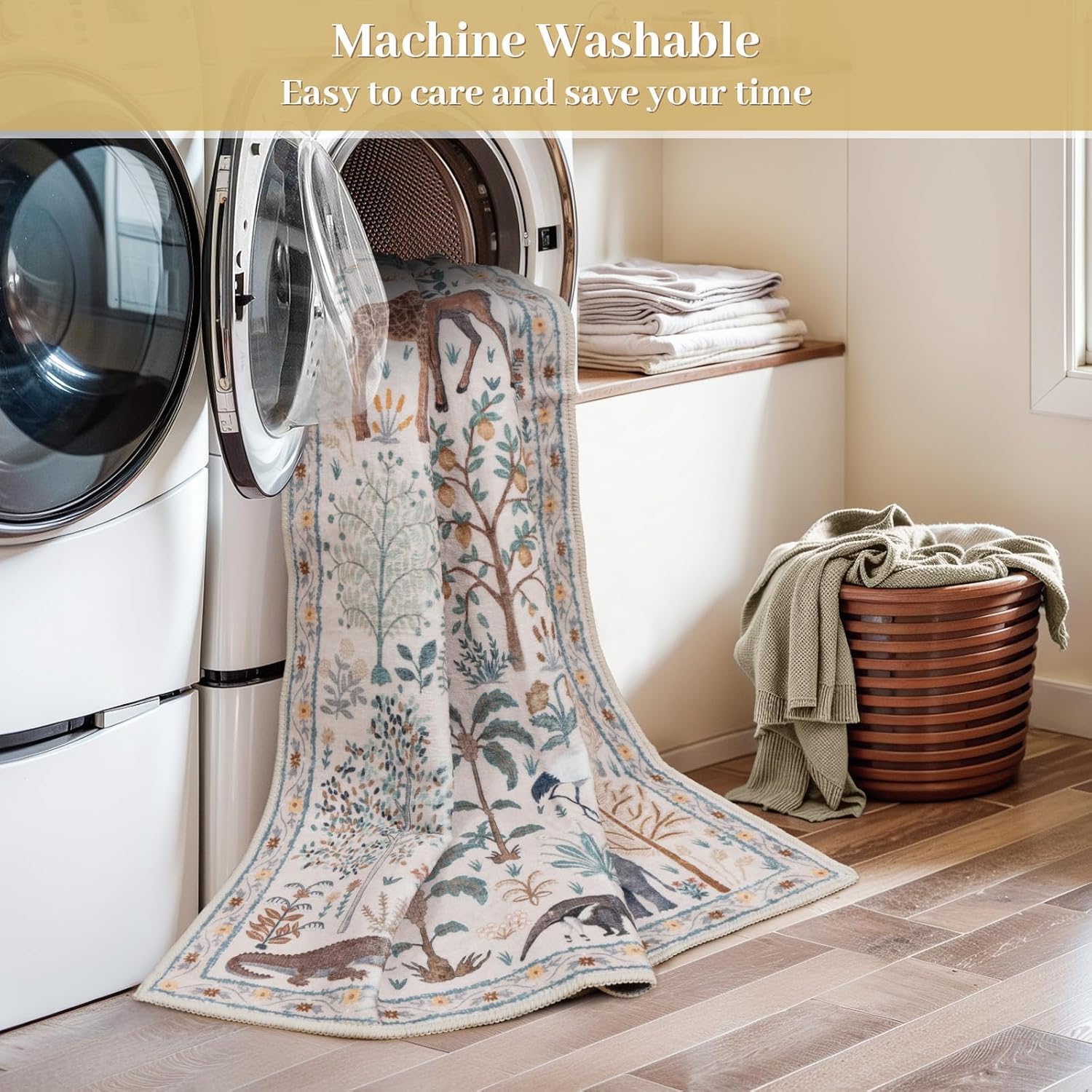 OJIA Jungle Living Room Rug 9x12 Washable Rugs for Bedroom, Ultra-Thin Modern Beige Non-Shedding Large Area Rug Playroom Rug Non-Slip Stain Resistant Accent Carpet for Kids Room Dining