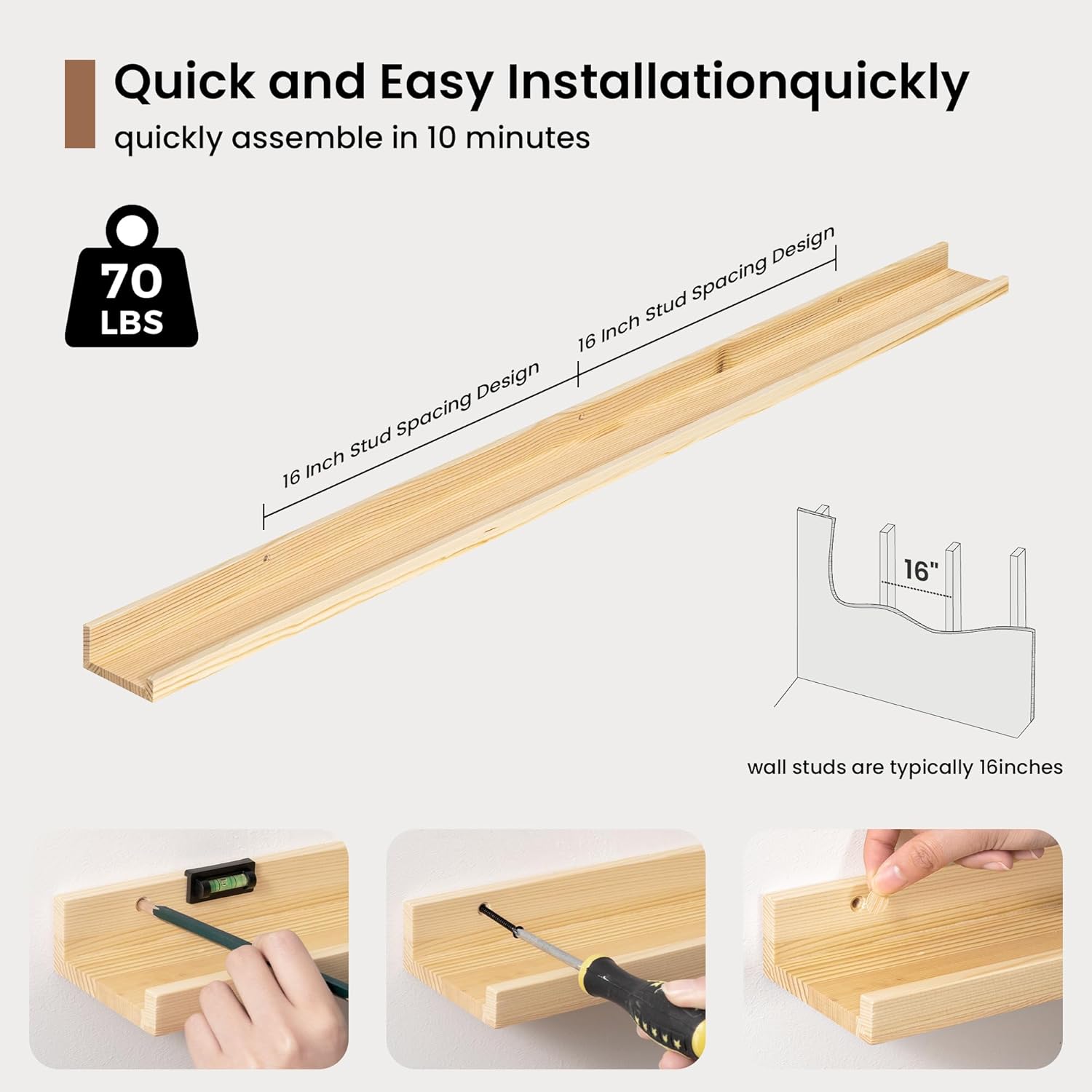 - 3.5" Floating Picture Ledge: Anti-Slip Narrow Design-3.5" ultra-narrow depth holds frames/plants without sliding, even on angled walls. Stud-Mounted Stability-16" pre-drilled holes match standard studs (hardware incl.) for wobble-free install. Clutter-Free Aesthetic-Clean lines blend with farmhouse/Scandinavian decor, focusing on your treasures