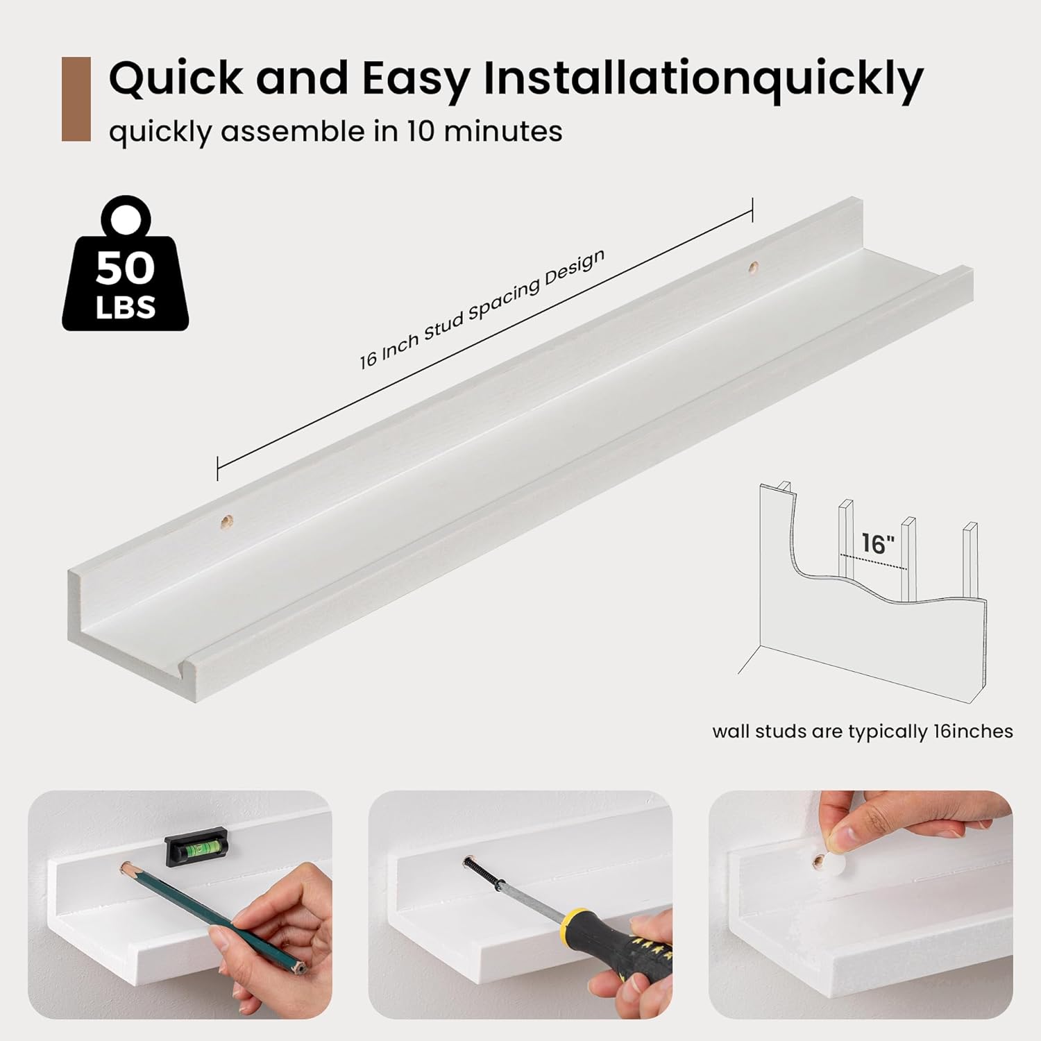 - Chic Minimalist Design: Solid pine wood picture ledge shelves available in multiple colors and sizes, these picture shelves complement any decor, from modern to farmhouse. Use them alone or in a gallery-style arrangement to create a stylish focal point