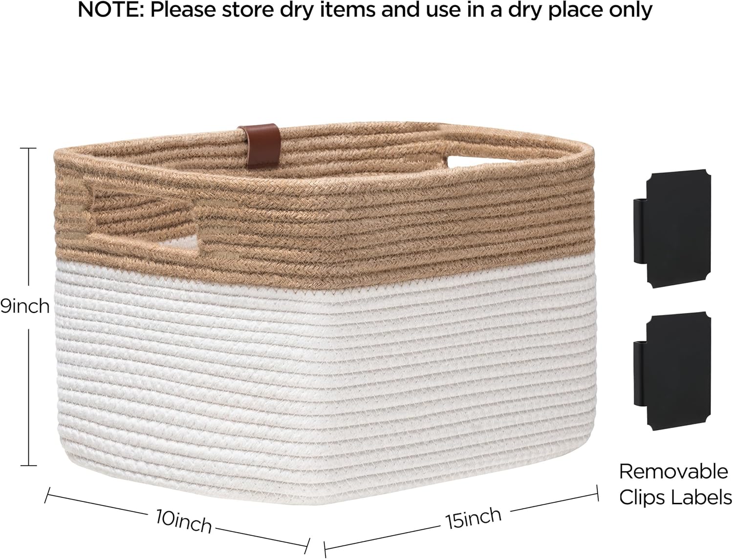 UBBCARE 2 Pack Baskets for Organizing, Woven Storage Baskets with Label for Toys and Towel, Rectangle Cotton Rope Basket with Handles, 15''L x10''W x9''H, Jute&White