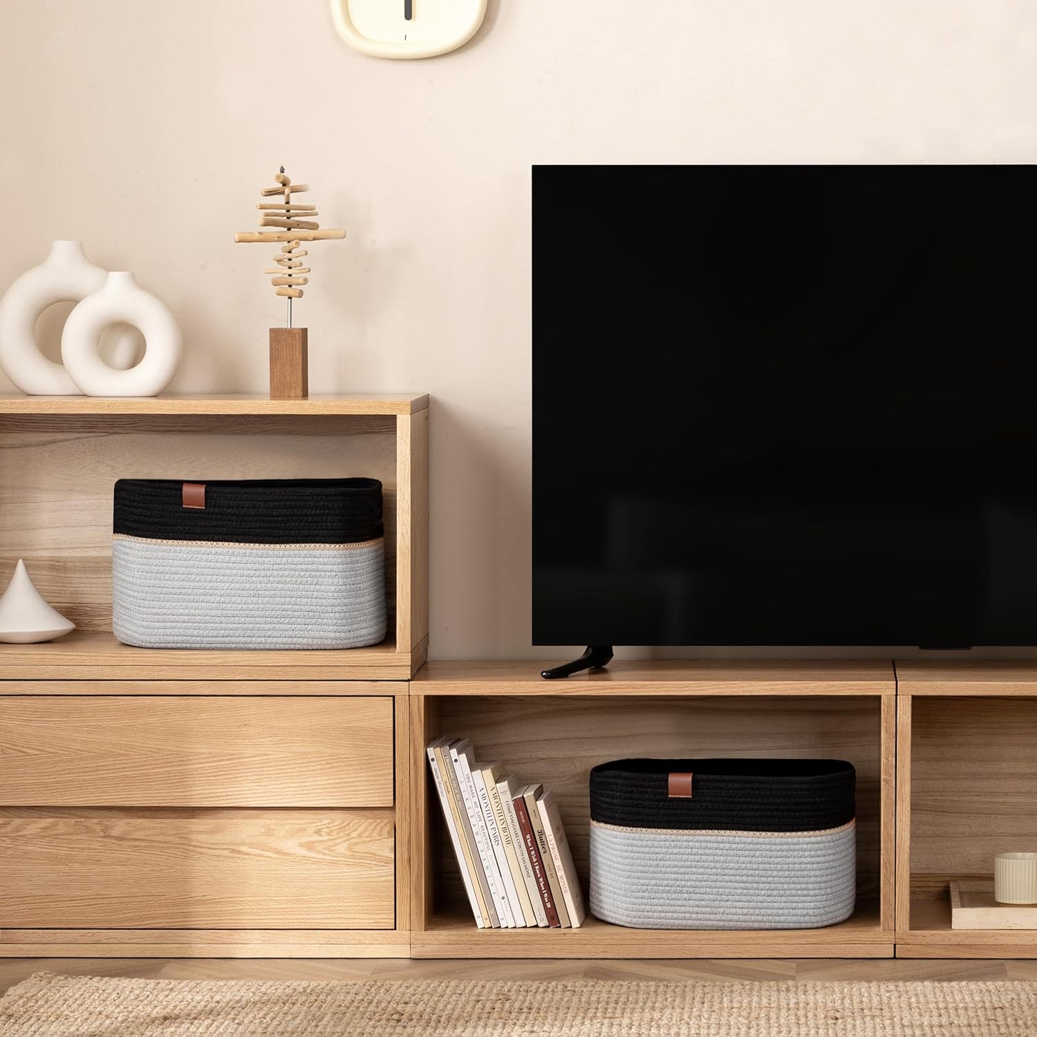 - Convenient Handles: Each basket for organizing has 2 sturdy & soft handles. It is convenient for moving and even if you carry items of high weight, do not hurt your hands. Built-in handle design makes your cube rope basket more beautiful.