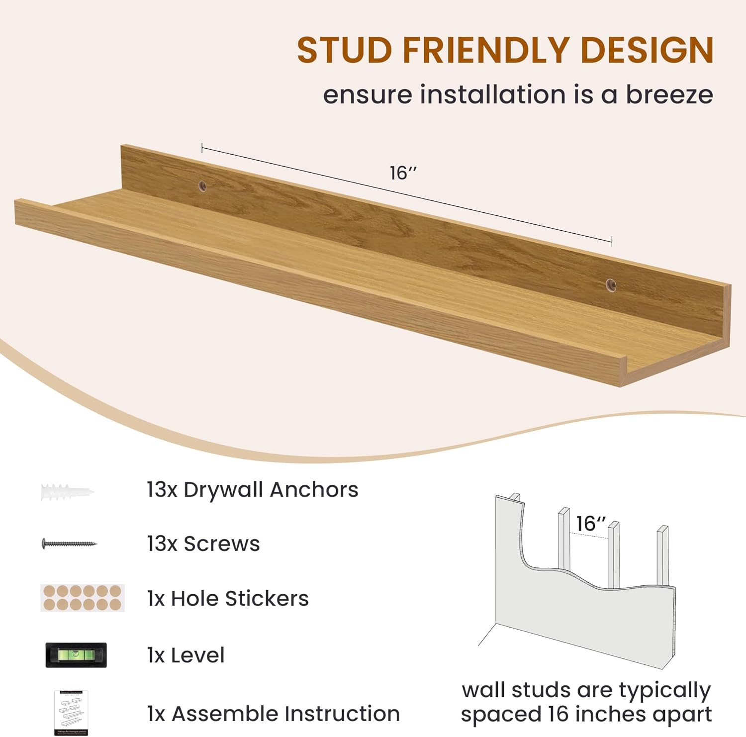 - Ledge Shelf with Lip Protection: Our every picture ledge shelf has a carefully designed front lip, which provides extra protection for your items to prevent them from slipping or falling off. You can rest assured that your favourite books, plants, picture frames, or decorative items are securely in place