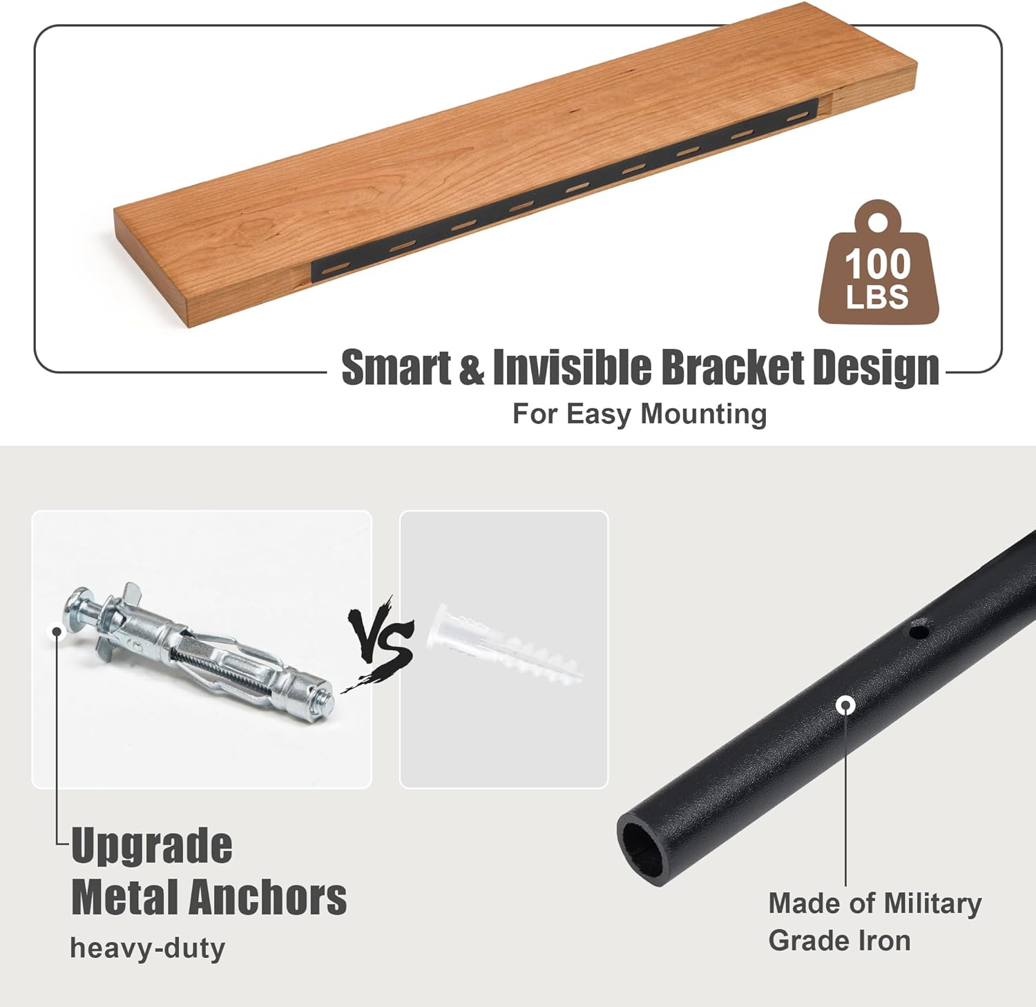 - Sturdy & Functional: Equipped with heavy-duty metal brackets, each shelf supports up to 100 lbs. The flat surface and stable construction make them suitable for any room while showcasing the natural beauty of the wood grain.