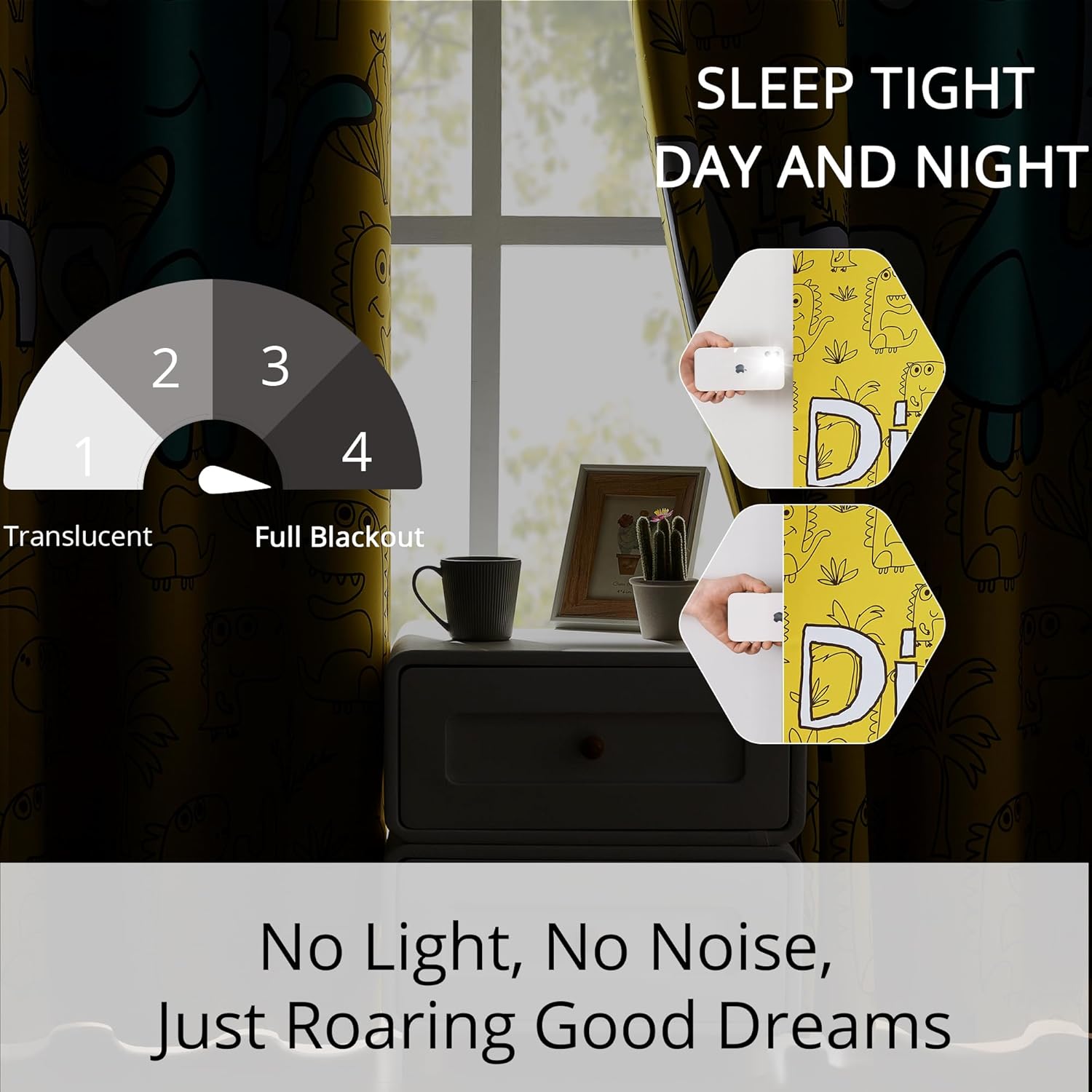 Dinosaur Blackout Curtains for Kids Room - 2 Panels, Each W52×L84, 100% Blackout, Thermal Insulated, Noise Reducing, Perfect for Kids Room and Nersury
