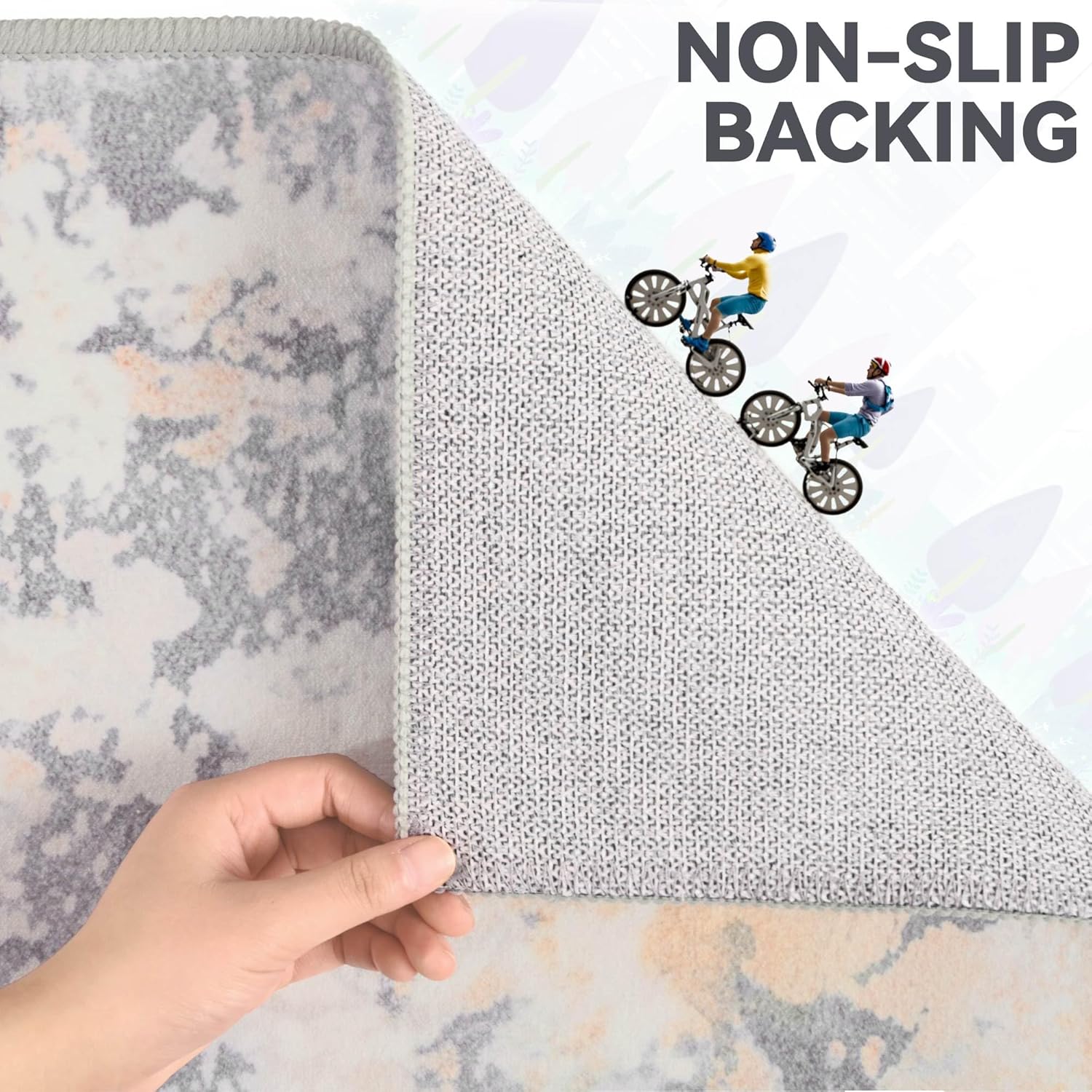 - Non-slip Backing: The bottom of the washable rug has a soft TPE rubber backing. It adheres very well to the floor and is not easy to slip, reducing the risk of tripping. Professional machine weaving and reinforced locking edges ensure no shedding