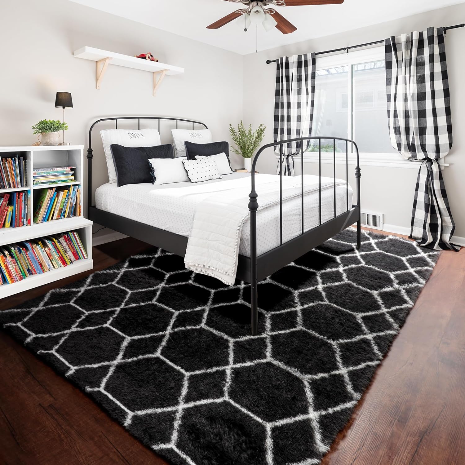 ONASAR 6x9 Area Rugs for Living Room Bedroom, Washable Large Fluffy Black and White Throw Rug, Geometric Soft Plush Shaggy Floor Carpet for Nursery Kids Girls Boys Teen Dorm Home Decor Aesthetic