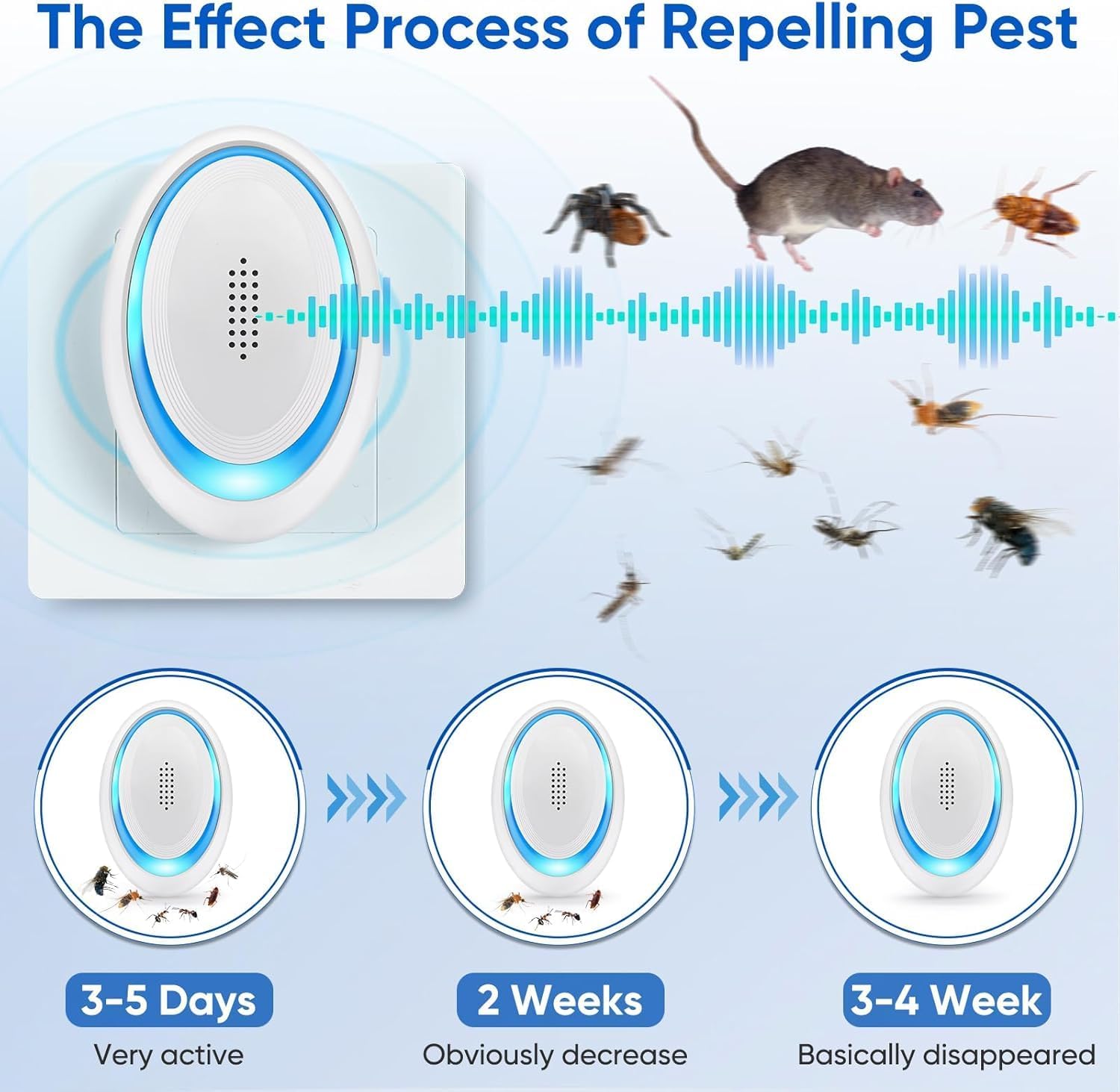- 🐀🚫【Advanced Dual-Frequency Ultrasonic Defense】Engineered with next-gen variable frequency technology, this rodent repellent ultrasonic plug in emits 60 ultrasonic waves per second across 25-65 kHz spectrum, disrupting pests' nervous systems 55% more effectively than standard models. The dynamic frequency cycling prevents mosquitoes, rodents, and insects from developing immunity, creating an adaptive shield against evolving infestations.