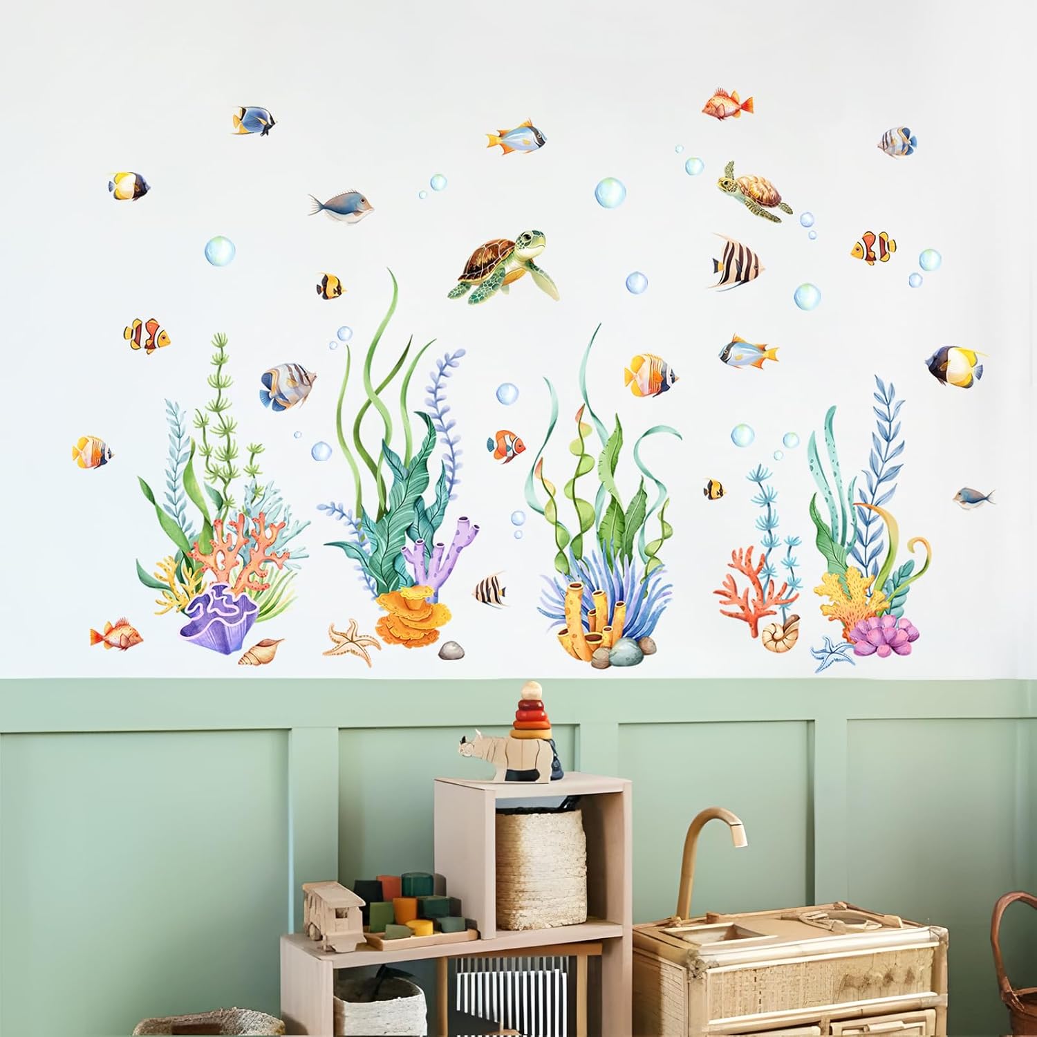 - Special Design: Featuring with various ocean grass seaweed sea turtle, under the sea wall stickers are perfect for decorating bathroom, nursery, kids room, baby room,classroom. DIY a magic and unique space for your kids