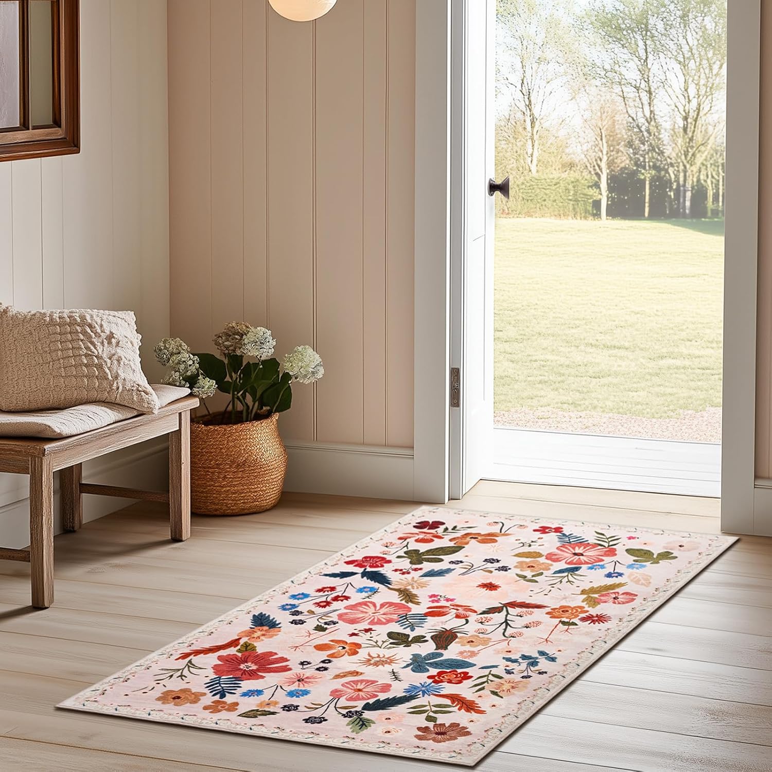 - Timeless Design for Any Space: Featuring Boho floral patterns and warm, rich colors, this area rug brings both elegance and coziness to your home. Its 0.3” pile height makes it perfect for high-traffic areas and underneath furniture, whether you’re creating a cozy living room or a stylish dining area.