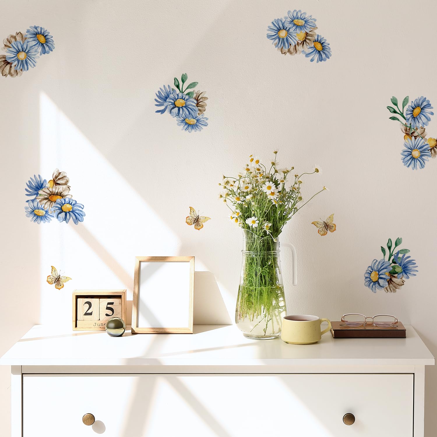 - Suitable for Any Color Walls: Our daisy flower decals feature a dual-layer printing design that offers high coverage and complements any wall color, ensuring a stunning visual impact. The blue daisy decals stand out beautifully on neutral or light-colored walls, creating a serene and harmonious feel