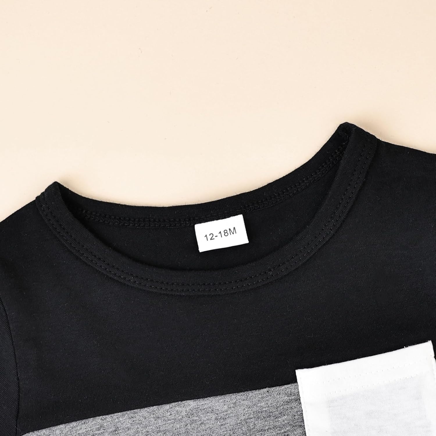 Baby Boy Clothes Toddler Boy Summer Outfits Short Sleeve Patchwork Top T-shirt & Pocket Pant Set 2 Piece 12 Months-4T