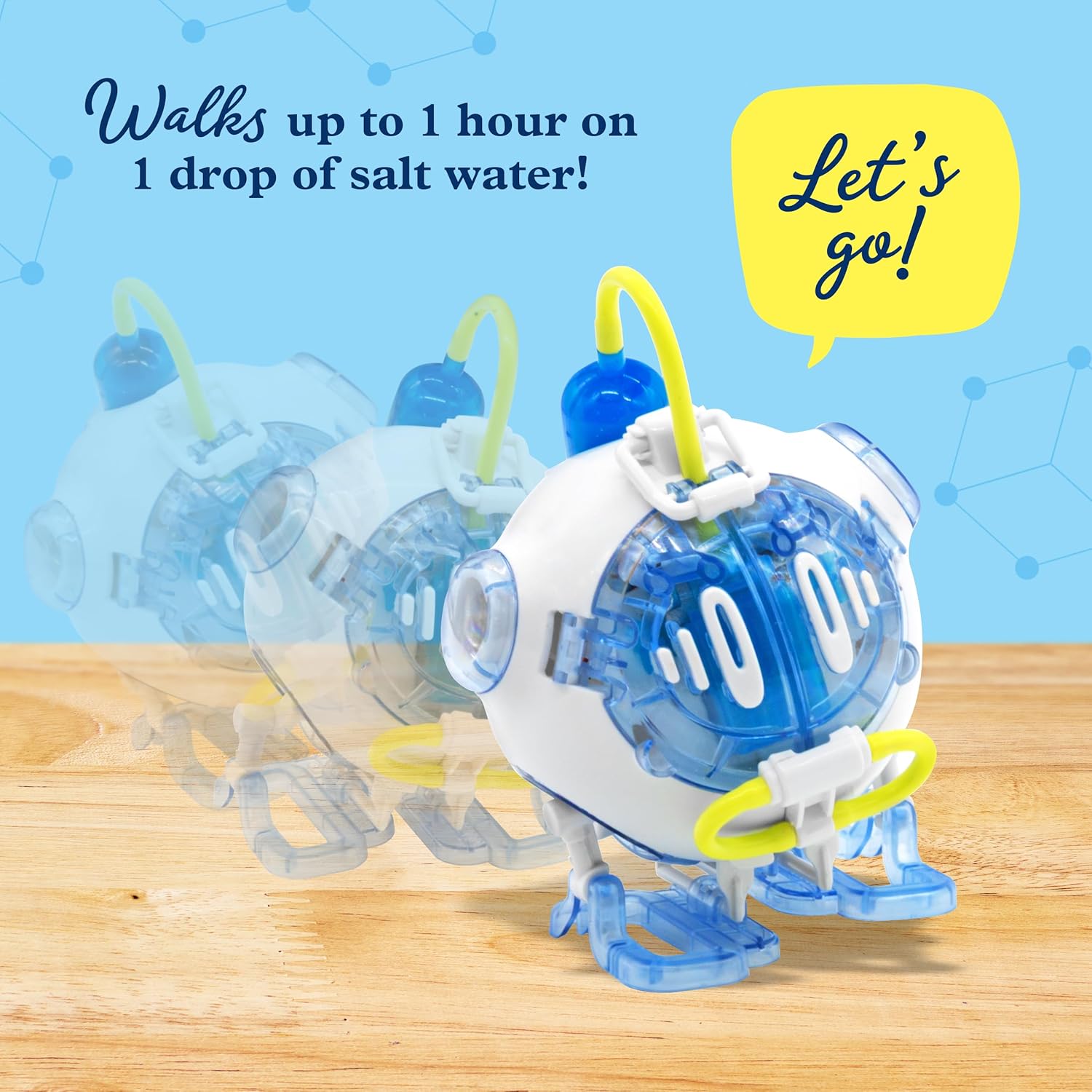 - BUILT TO MOVE! Kids ages 8 & up assemble a walking robot that’s powered by salt water and magnesium alone—no batteries required!