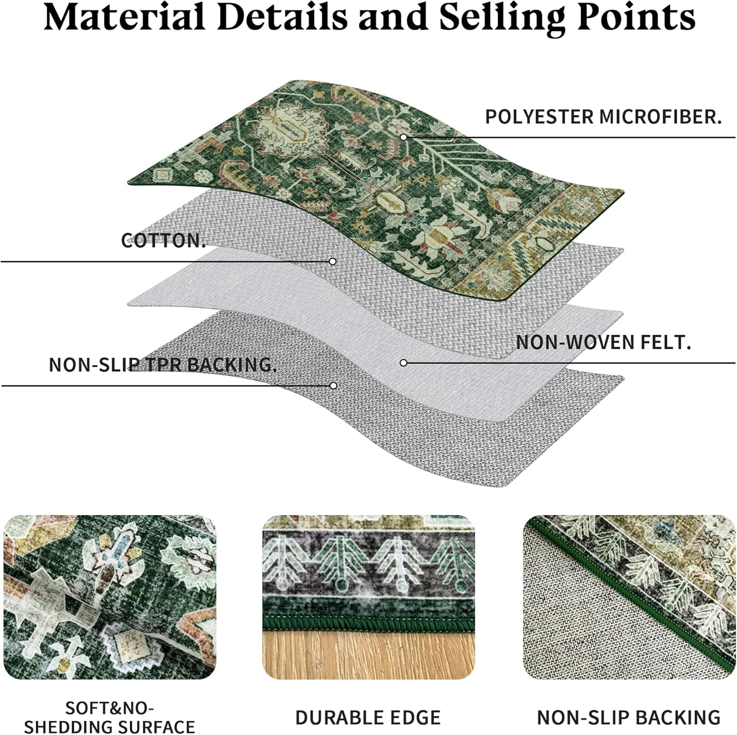 - Non-Slip Backing: The rug uses high-quality TPR elastomer synthetic rubber as an anti-skid backing to protect the safety of you and your family at all times