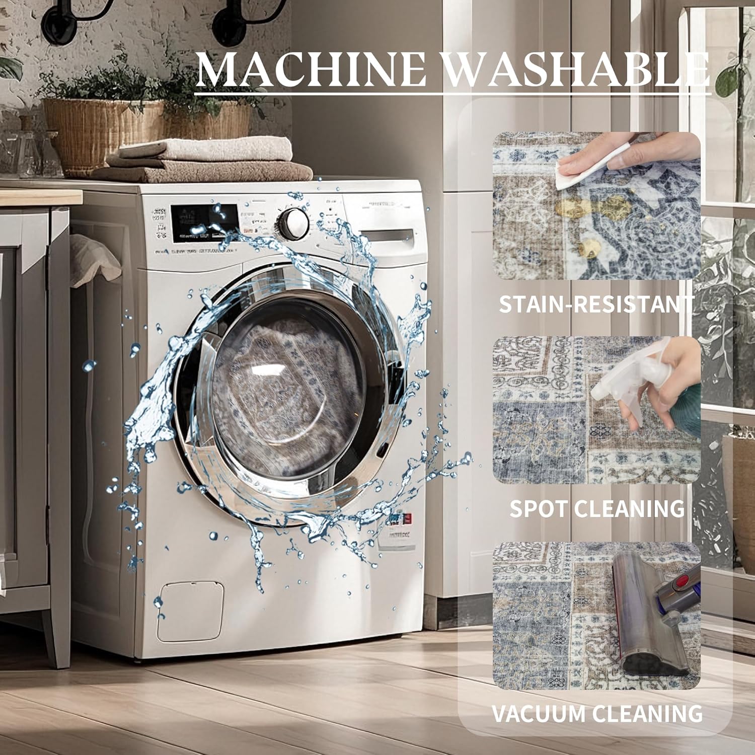 - Easy to Clean: You can use a vacuum cleaner or robot vacuum cleaner to clean the rug on a daily basis. This is also a machine washable rug. You can also put it in the washing machine for deep cleaning, Which greatly saves your time