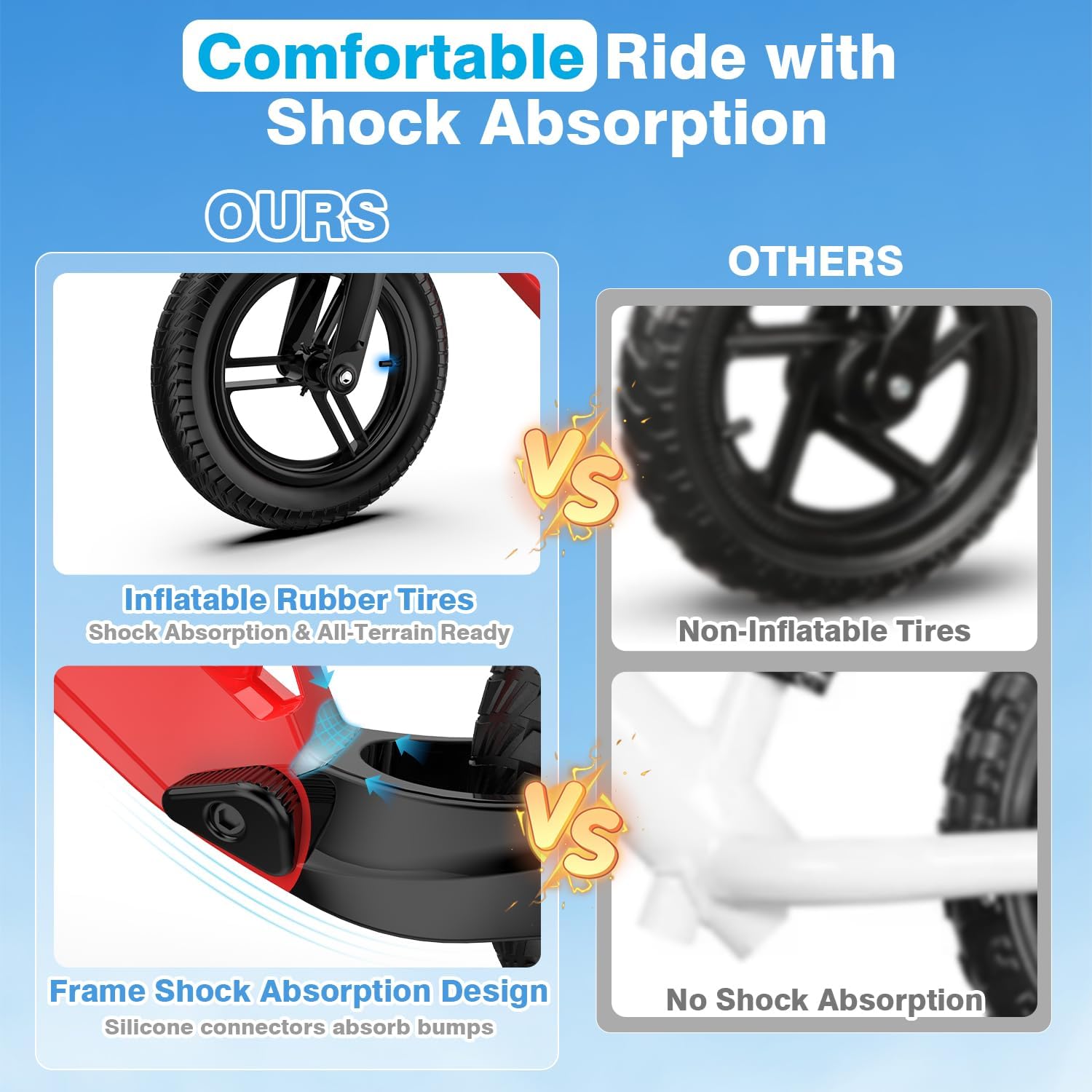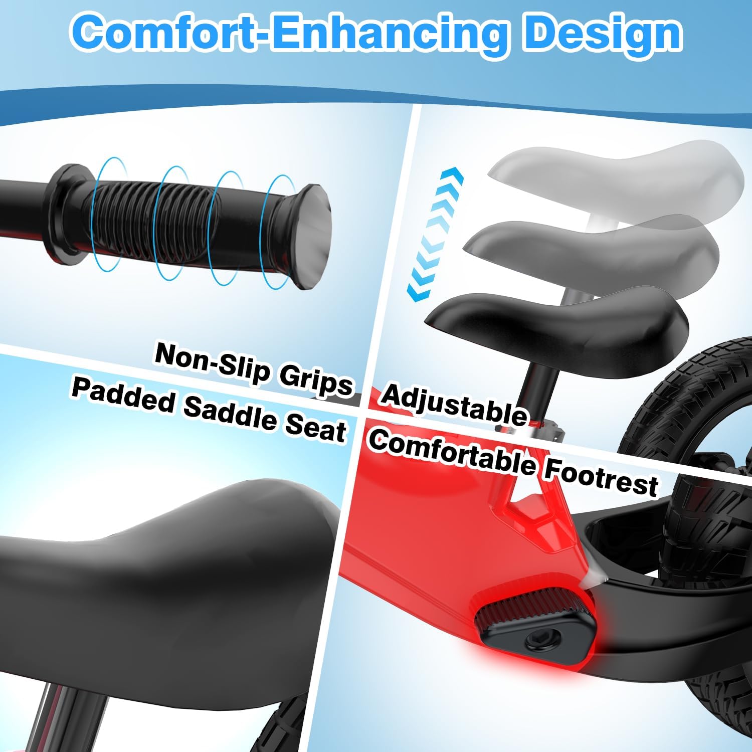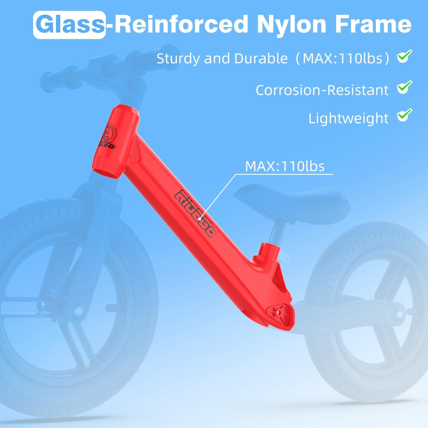 - 【UNLEASH YOUR CHILD'S ADVENTURE】Designed for kids aged 2 to 5, this 12-inch balance bike for toddlers helps develop cycling skills with ease. No training wheels, no pedals—just fun and freedom to explore sidewalks, trails, and backyards. A perfect first step to confident riding!