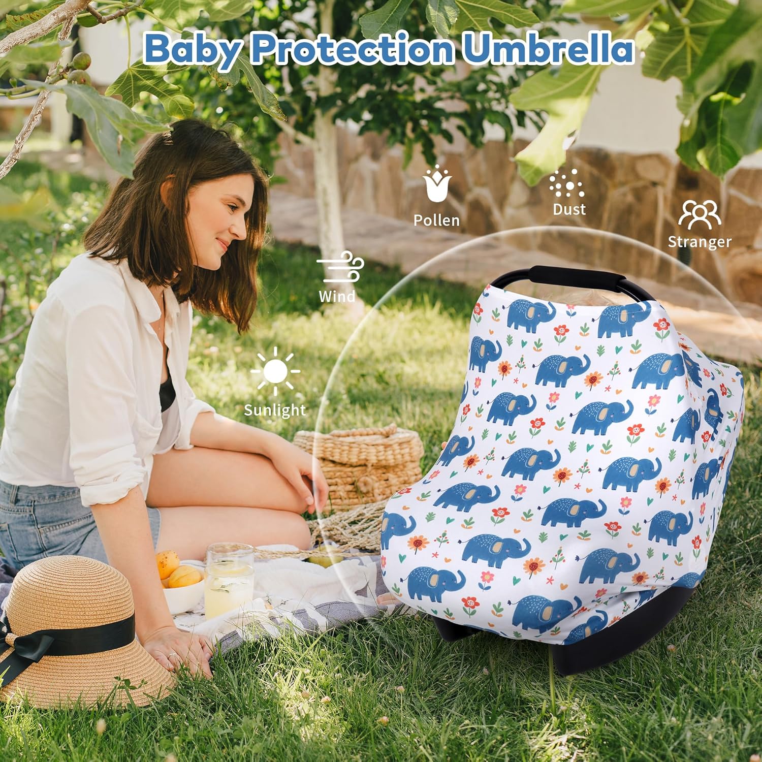 Rquite All-in-1 Car Seat Cover Baby, Carseat Covers for Girl Boy, Stretchy Soft Infant Car Seat Cover, Multi-use Baby Carrier Cover, Car Seat Canopy, Stroller Sun Shade, Nursing Breastfeeding Cover