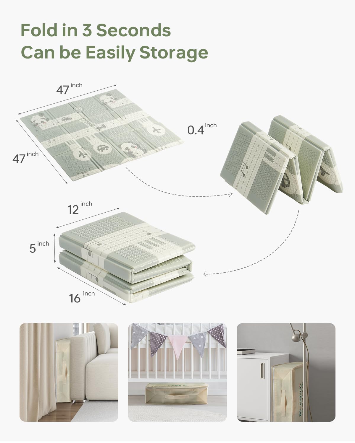 - [Foldable & Portable]: Our crawling mats are easy to fold and spread out, and easy to store and carry. So you can always take it outside to enjoy a pleasant outdoor time with your baby!