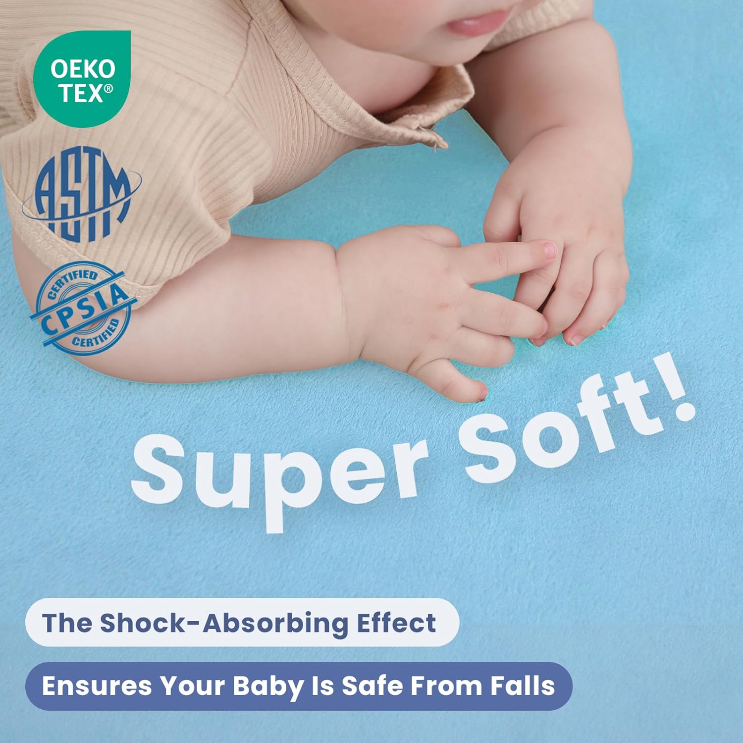 - 【SAFE FOR BABY】:Our light blue baby play mats can be used as playpens, transforming your kids' play area into a soft and safe adventure zone. Children will love rolling, sliding, and playing on our mats without you worrying about them getting hurt on hard floors. The activity play gym is also great for tummy time for little ones. Walking on it with bare feet feels heavenly! Plus, it passes CPSIA and ASTM tests, so you can use it with confidence and peace of mind