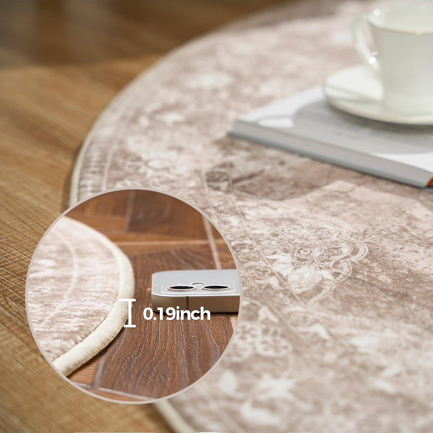 jinchan Round Rug 4ft Area Rug - Brown Vintage Floor Mat Kitchen Indoor - Washable Circle 4' Thin Floral Print Carpet Retro Farmhouse Non Slip Dining Room Living Room Bedroom Office