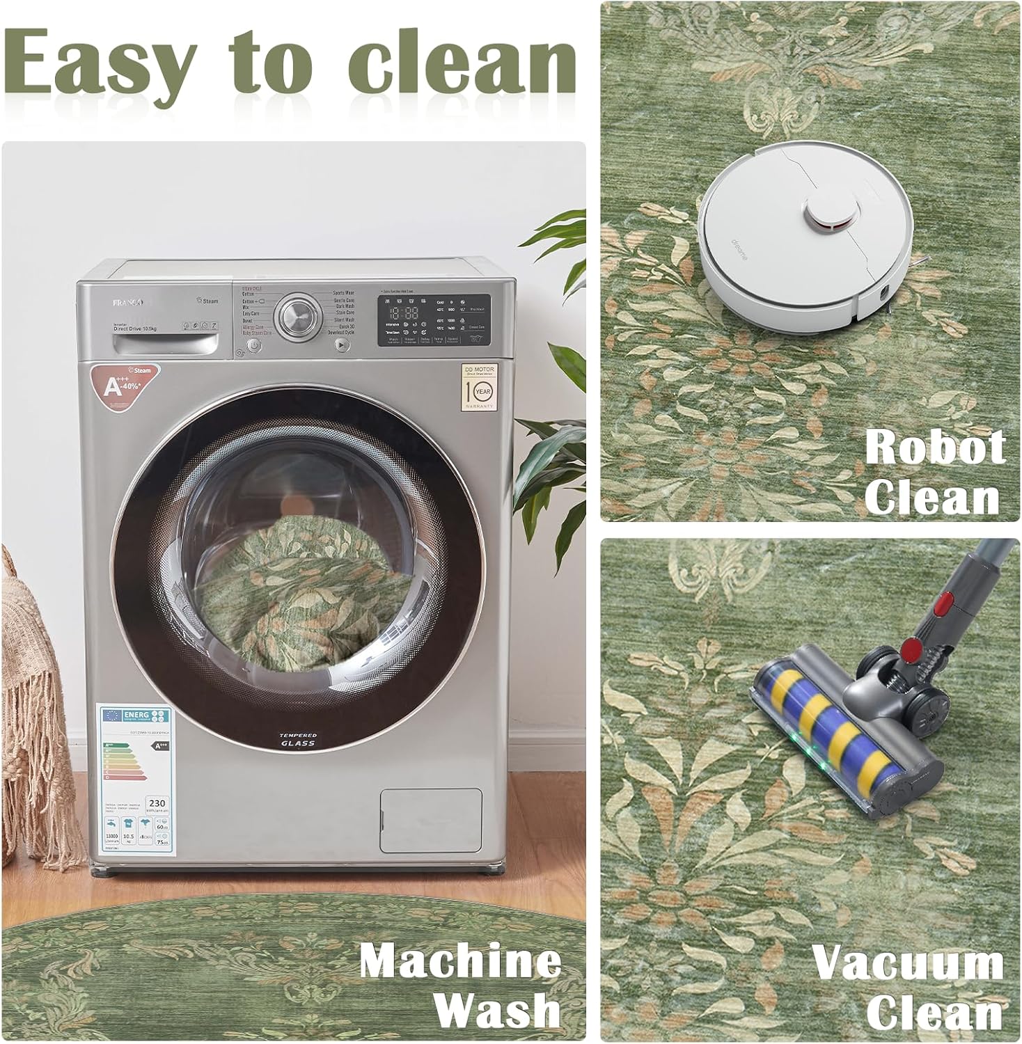 - Easy to Clean: With its easy-to-clean surface, Jinchan rug requires only minimal effort to keep it fresh. Use a handheld small vacuum cleaner to remove the dust or hair for daily cleaning. Machine wash with cold water on gentle cycle