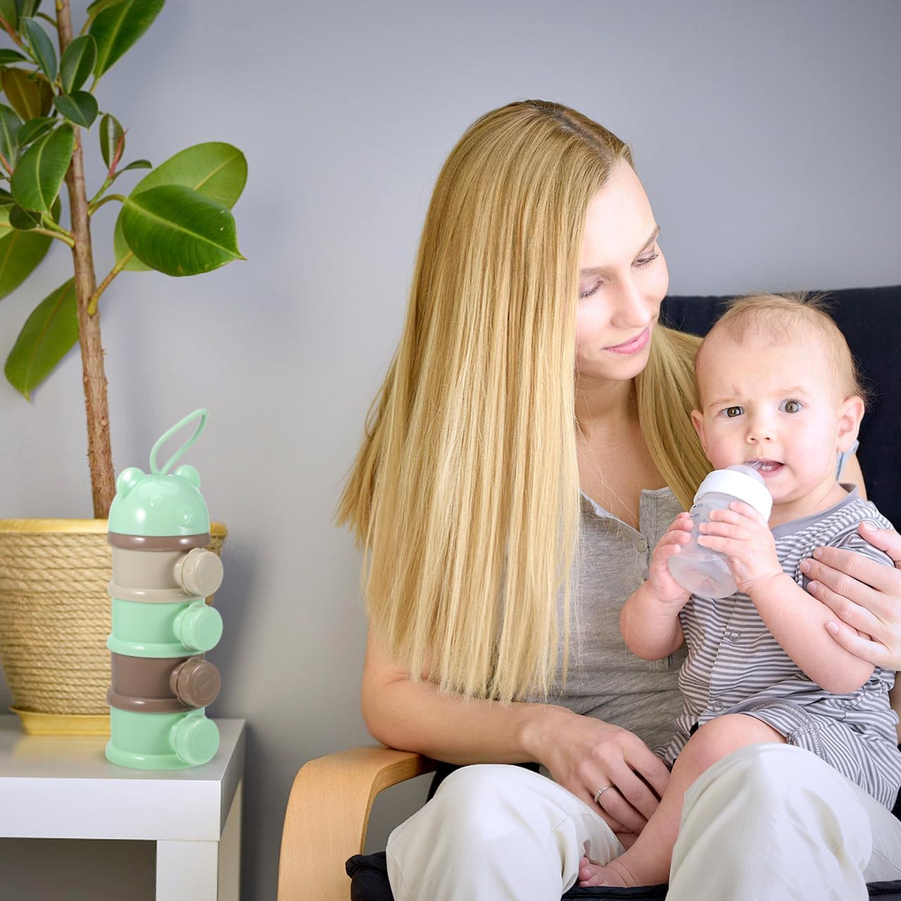 IMIKEYA Stackable Formula Dispenser - 4-Layer Milk Powder Container for Travel Light Green